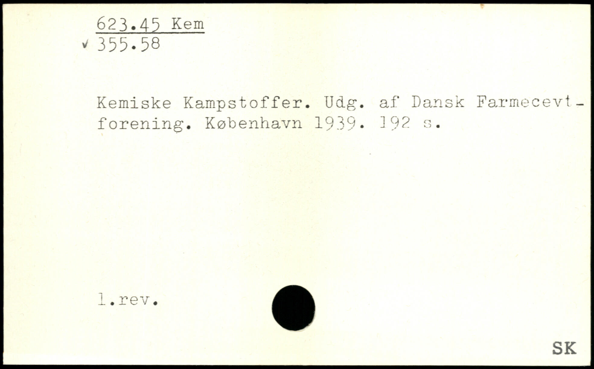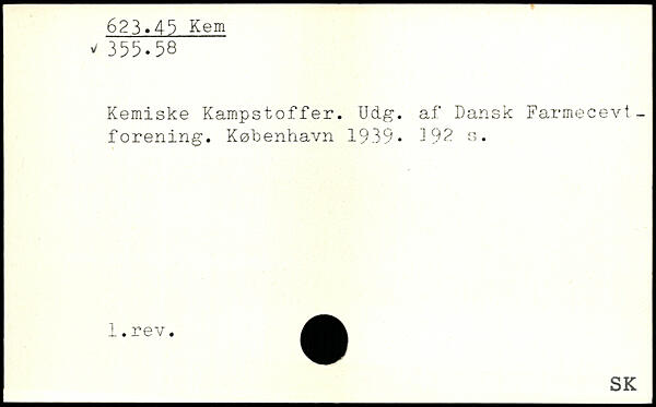 Kemiske Kampstoffer. Udg. af Dansk Farmecevt-forening.