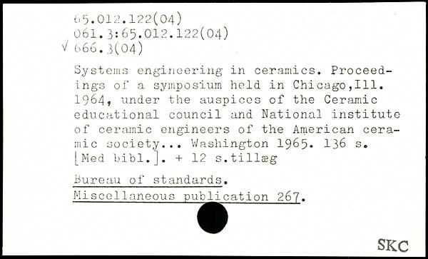 Systems engineering in ceramics. Proceedings of a symposium held in Chicago,111. 1964. under the auspices of the Ceramic educational council and National institute of ceramic engineers of the American ceramic society...