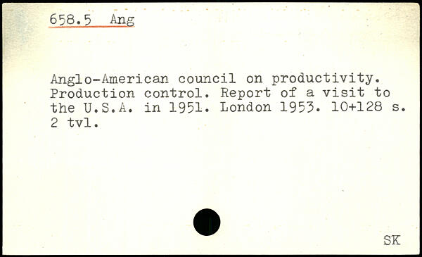 Anglo-American council on productivity. Production control. Report of a visit to the U.S.A. in 1951.