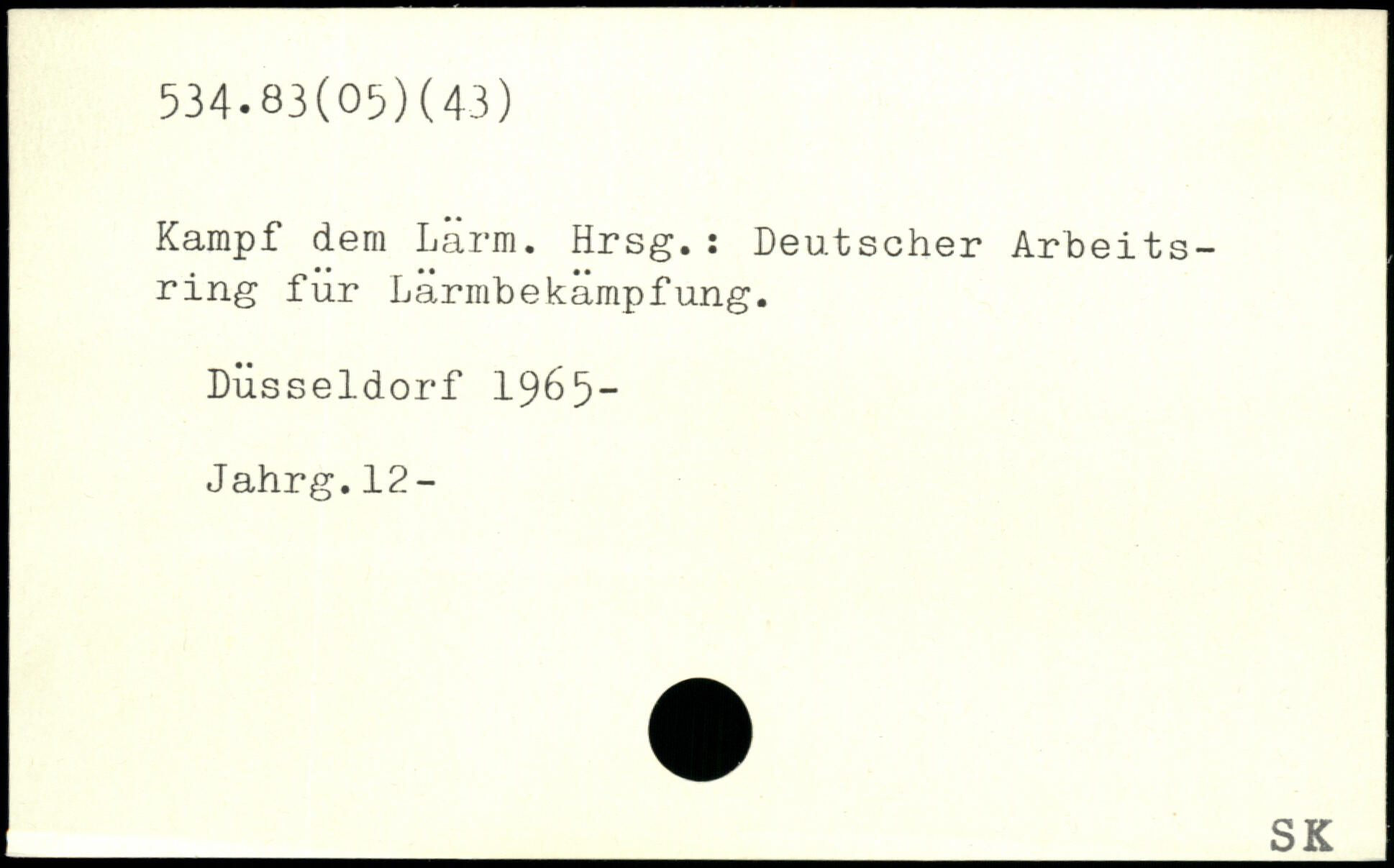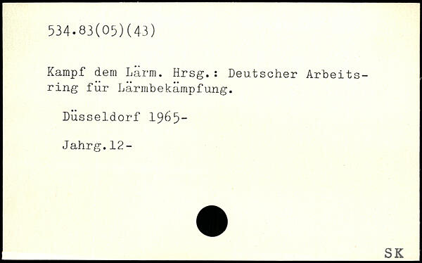 Kampf dem Lärm. Hrsg.: Deutscher Arbeitsring für Lärmbekampfung. Düsseldorf 1965- Jahrg.12-