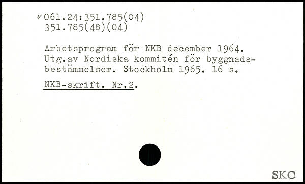 Arbetsprogram för NKB december 1964. Utg.av Nordiska kommitén for byggnads-bestammelser.