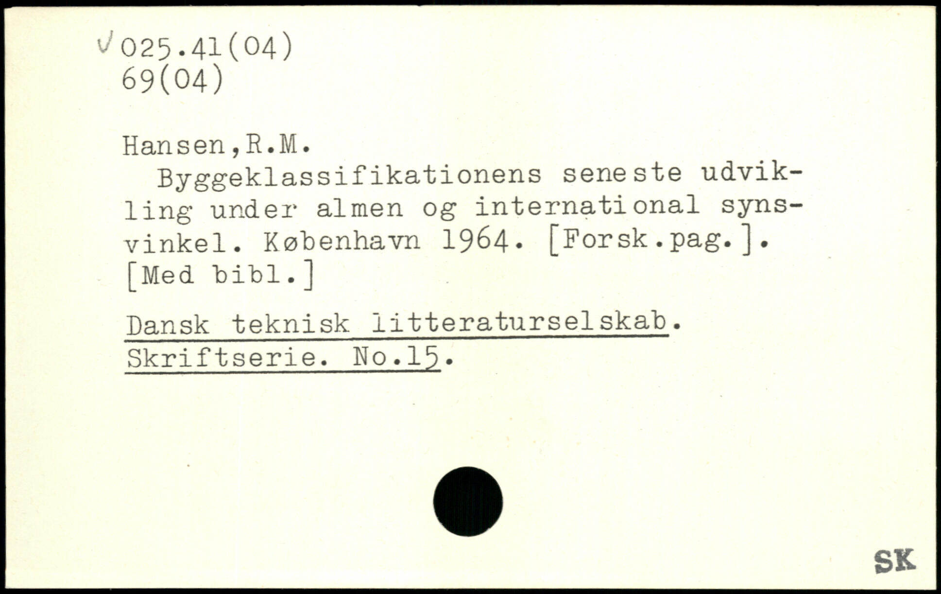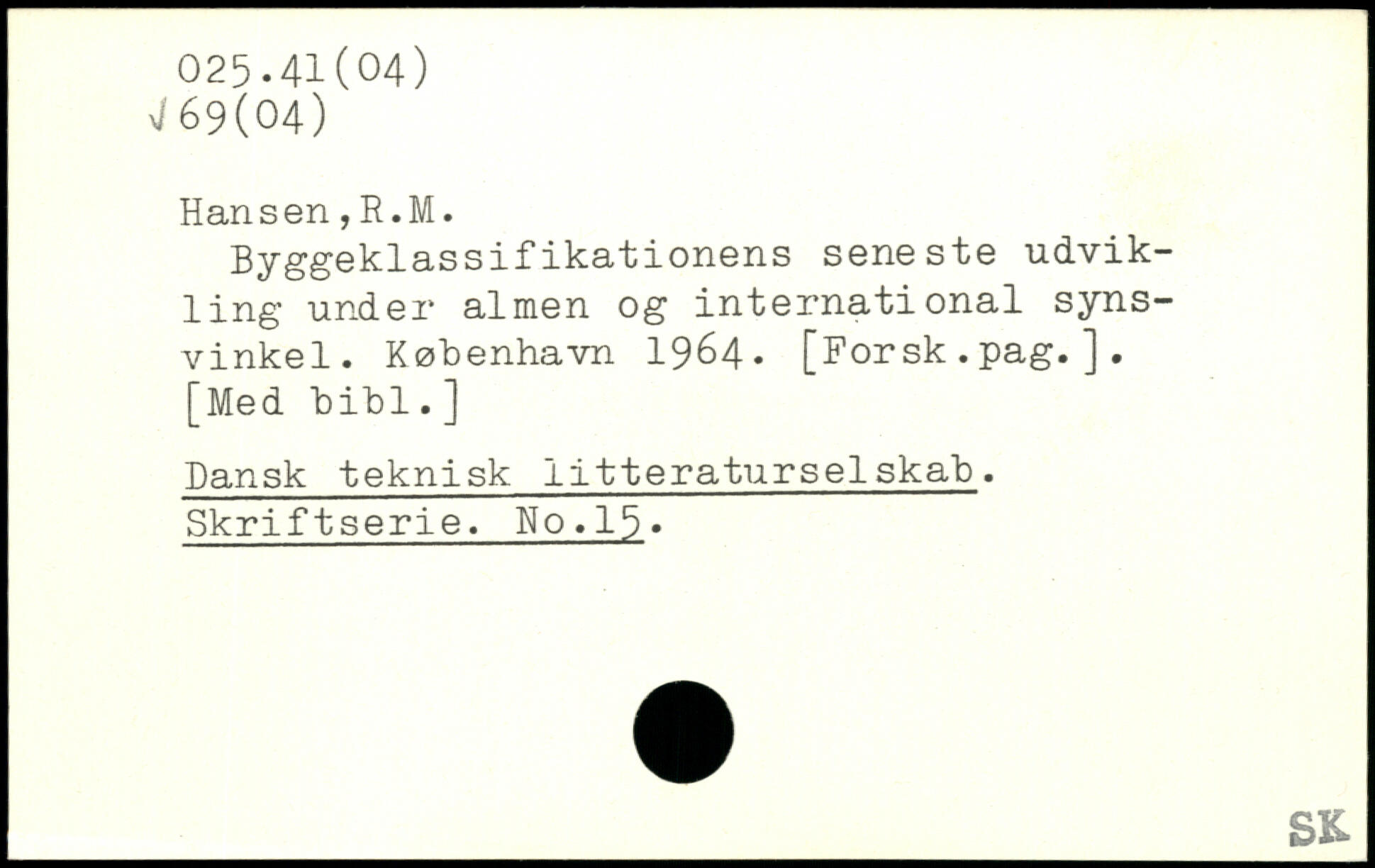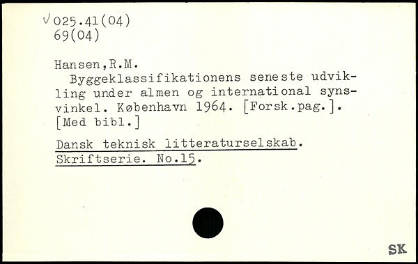Byggeklassifikationens seneste udvikling under almen og international synsvinkel. København 19&4. [Forsk.pag.].