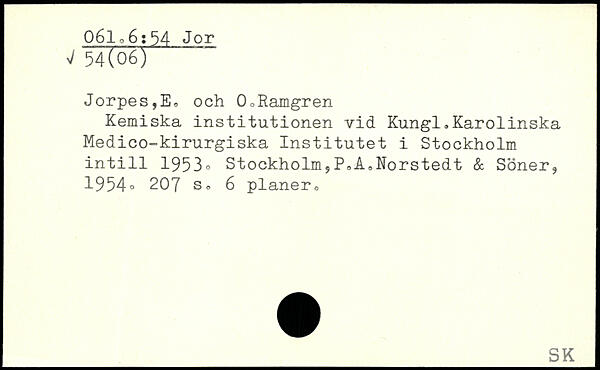 Kemiska institutionen vid Kunglo Karolinska Medico-kirurgiska Institutet i Stockholm intill 1953, Stockholm,P8A0Norstedt & Söner, 1954.