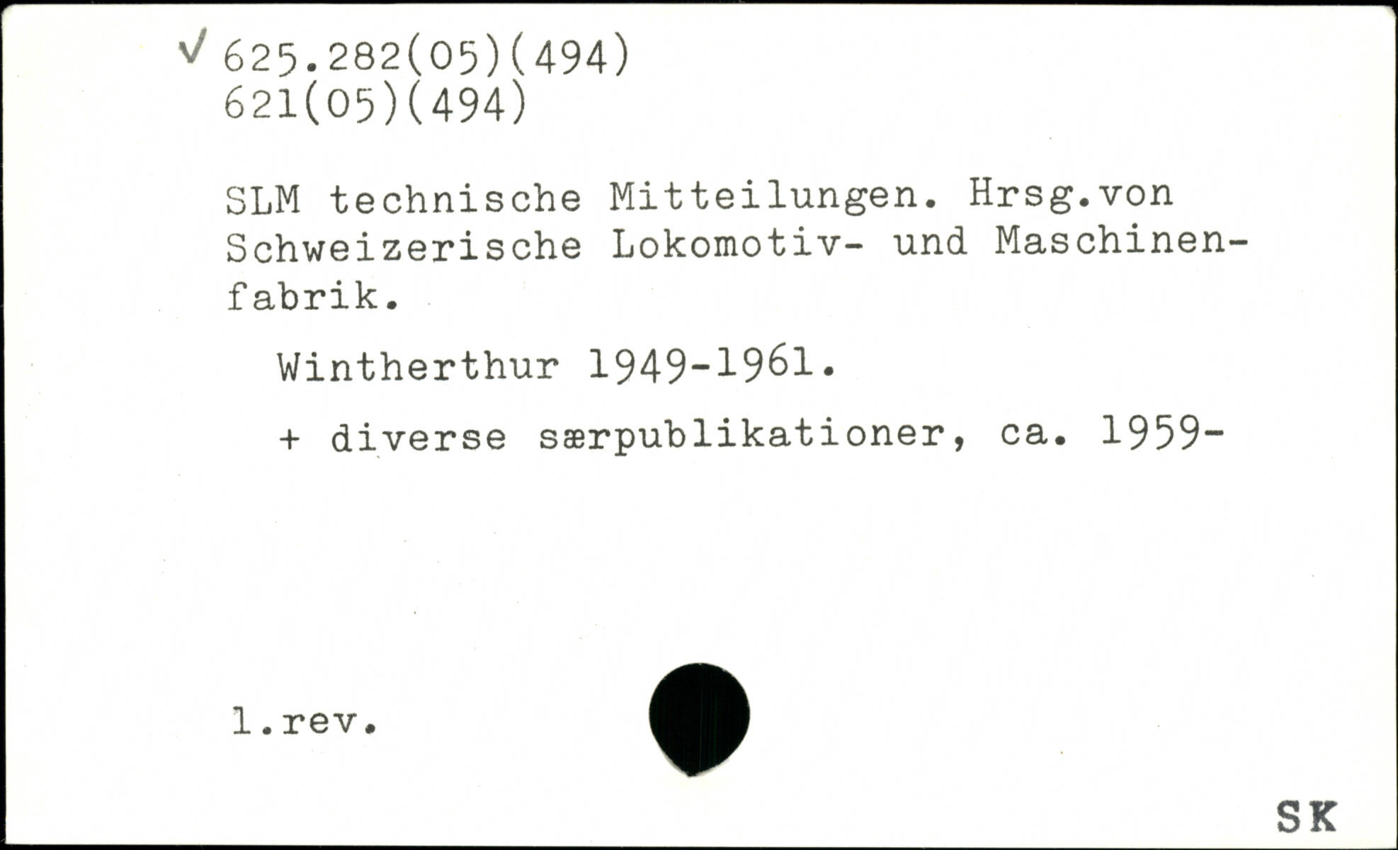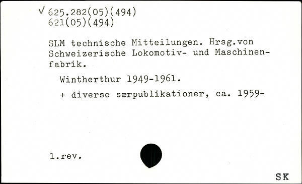 SLM technische Mitteilungen. Hrsg.von Schweizerische Lokomotiv- und Maschinenfabrik. Wintherthur 1949-1961. + diverse saerpublikationer, ca. 1959—