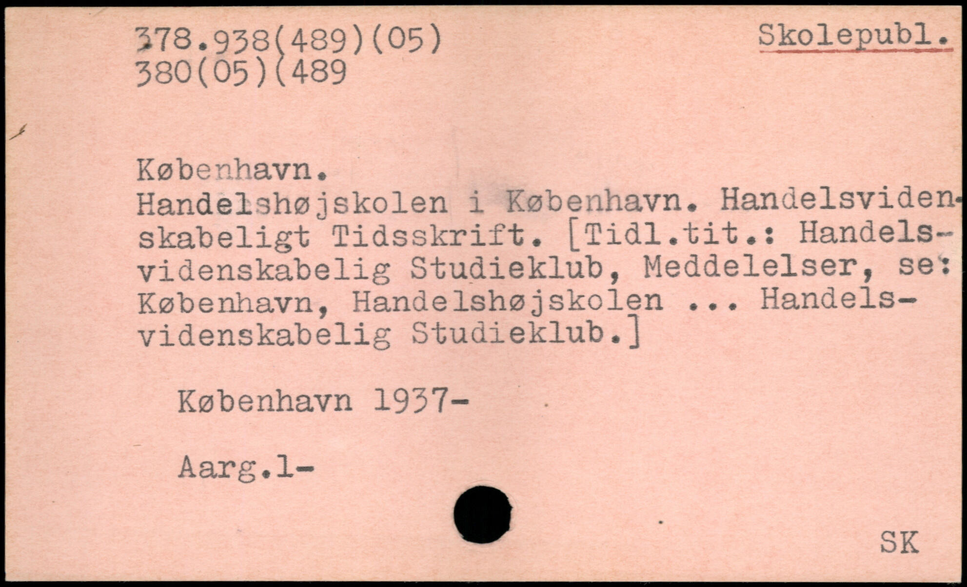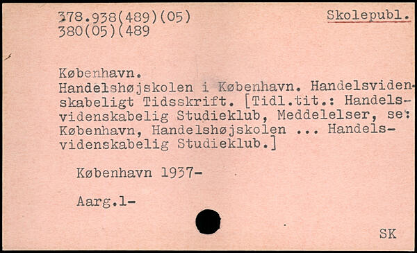 Handelshøjskolen i København. Handelsviden. skabeligt Tidsskrift. [Tidl.tit.: Handels-videnskabelig Studieklub, Meddelelser, se': København, Handelshøjskolen ... Handelsvidenskabelig Studieklub.]