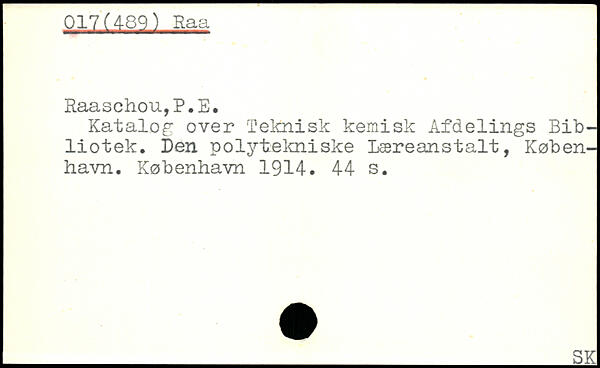 Katalog over Teknisk kemisk Afdelings Bibliotek. i)en polytekniske Læreanstalt, København.