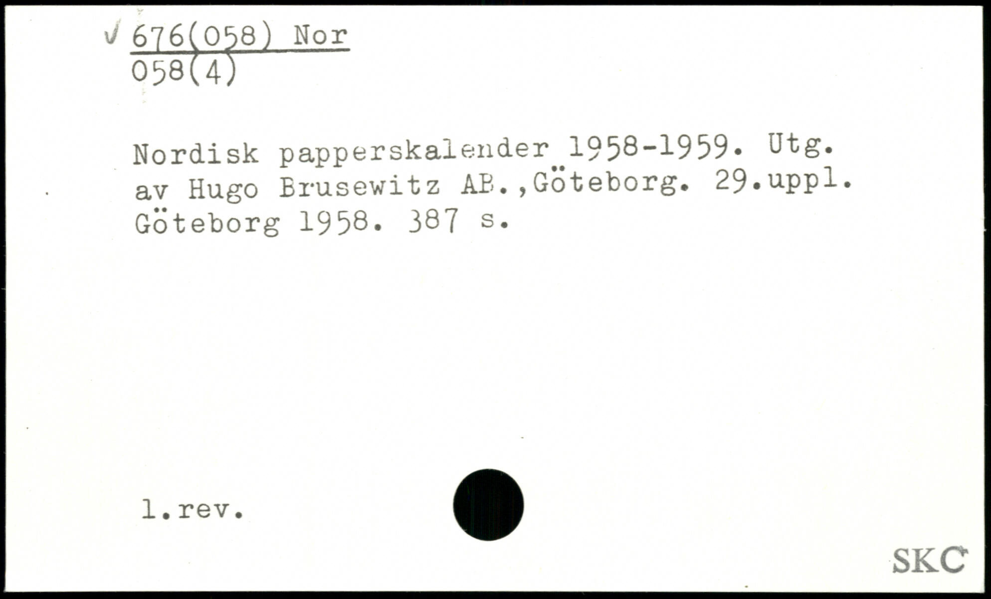 Nordisk papperskalender^1958-1959. Utg. av Hugo Brusewitz AB.,Goteborg. 29-uppl. Göteborg 1958.
