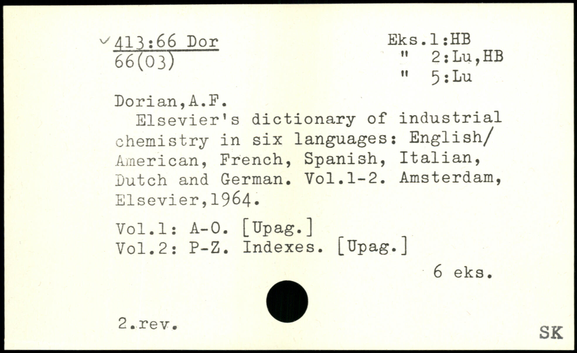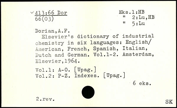 Elsevier's dictionary of industrial chemistry in six languages: English/ American, French, Spanish, Italian, Dutch and German.