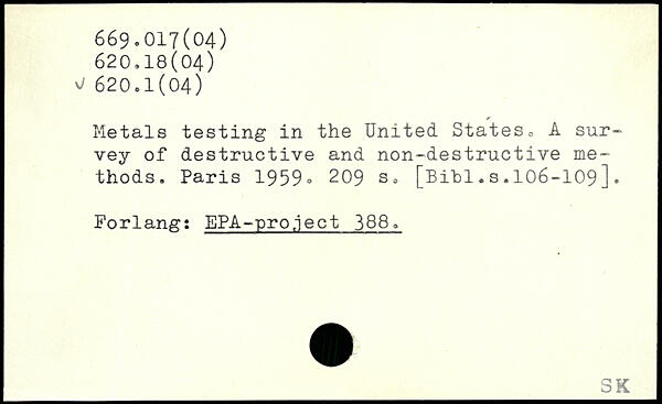 Metals testing in the United States. A survey of destructive and non-destructive methods.