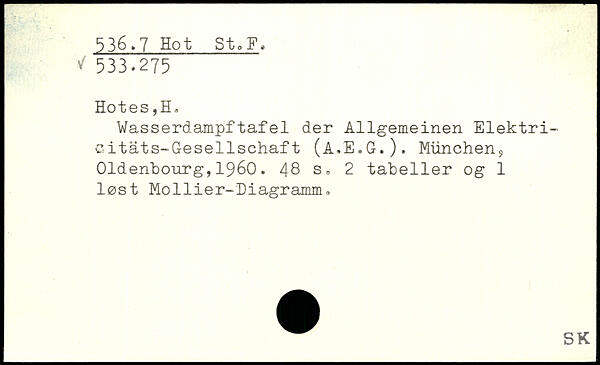 Wasserdampftafel der Allgemeinen Elektricitäts-Gesellschaft (A.E.G.). München,, Oldenhonrg,1960.