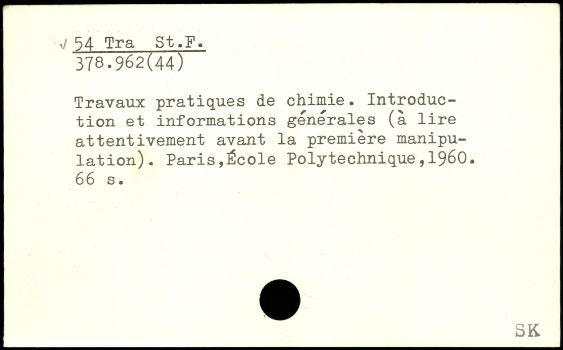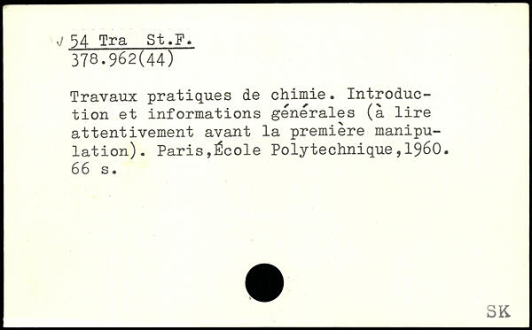 Travaux pratiques de chimie. Introduction et informations générales (à lire attentivement avant la première manipulation). Paris,École Polytechnique,1960.