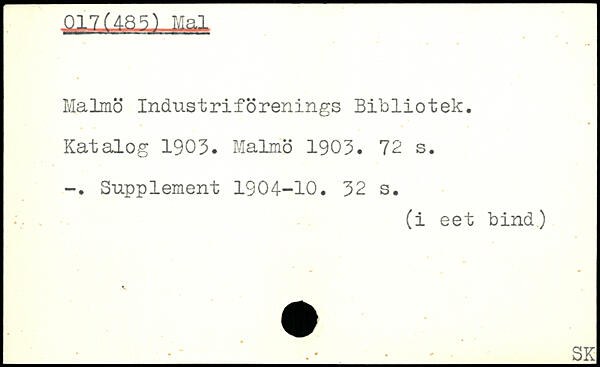 Malmo Industriforenings Bibliotek. Katalog 1903. Malmo 1903.