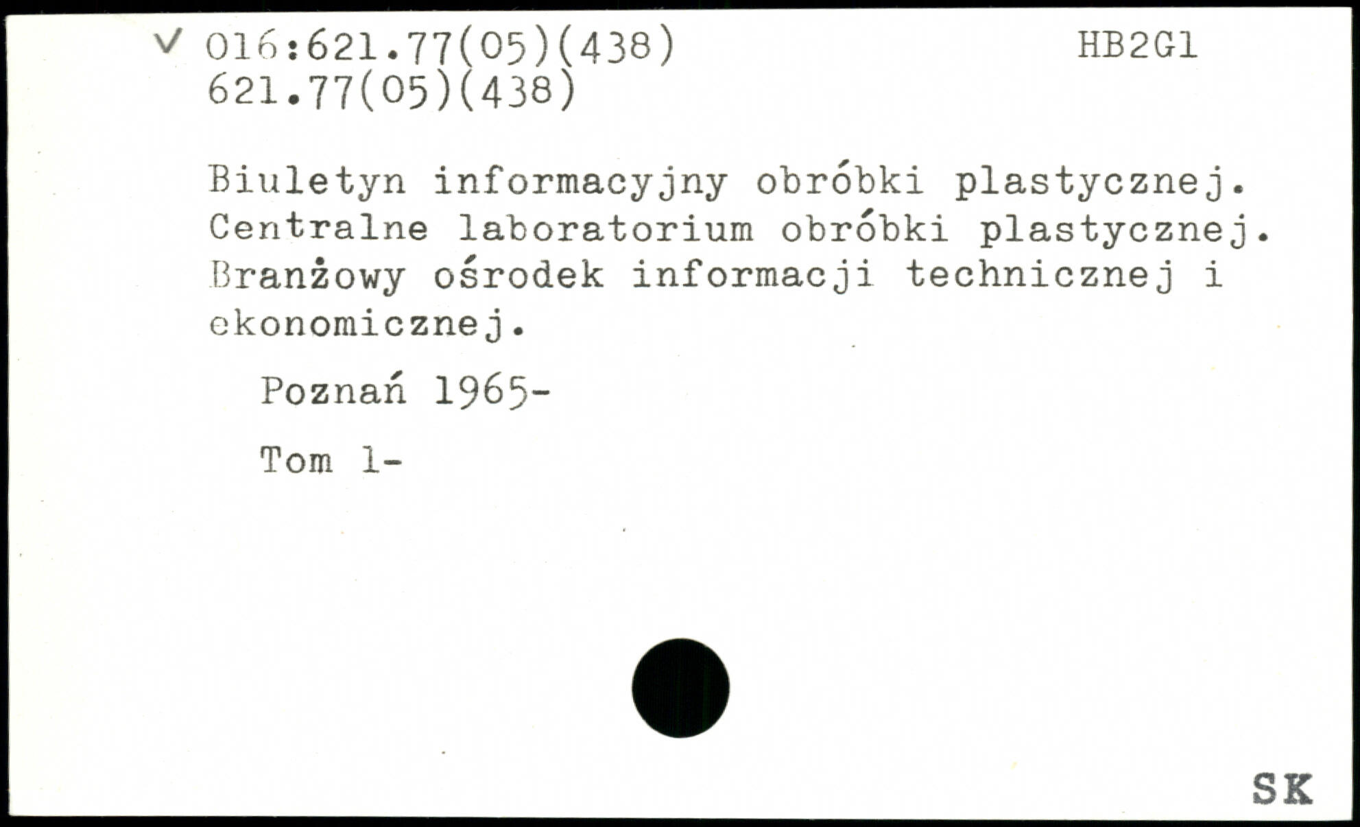 Biuletyn informacyjny obrobki plastycznej. Centraine laboratorium obrobki plastycznej. Branzowy osrodek informacji technicznej i ekonomicznej. Poznan 1965- Tom 1-