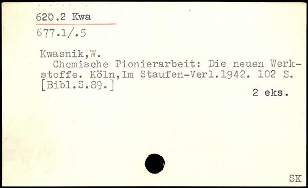 Chemische Pionierarbeit: Die neuen Werkstoffe. Köln,Im Staufen-Verl.1942.