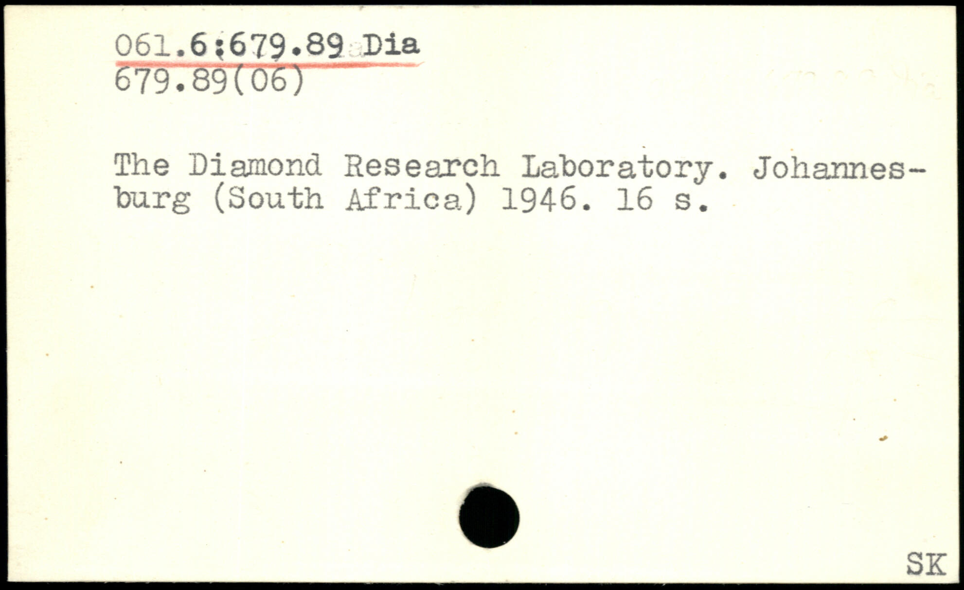 The Diamond Research Laboratory. Johannesburg (South Africa) 1946.