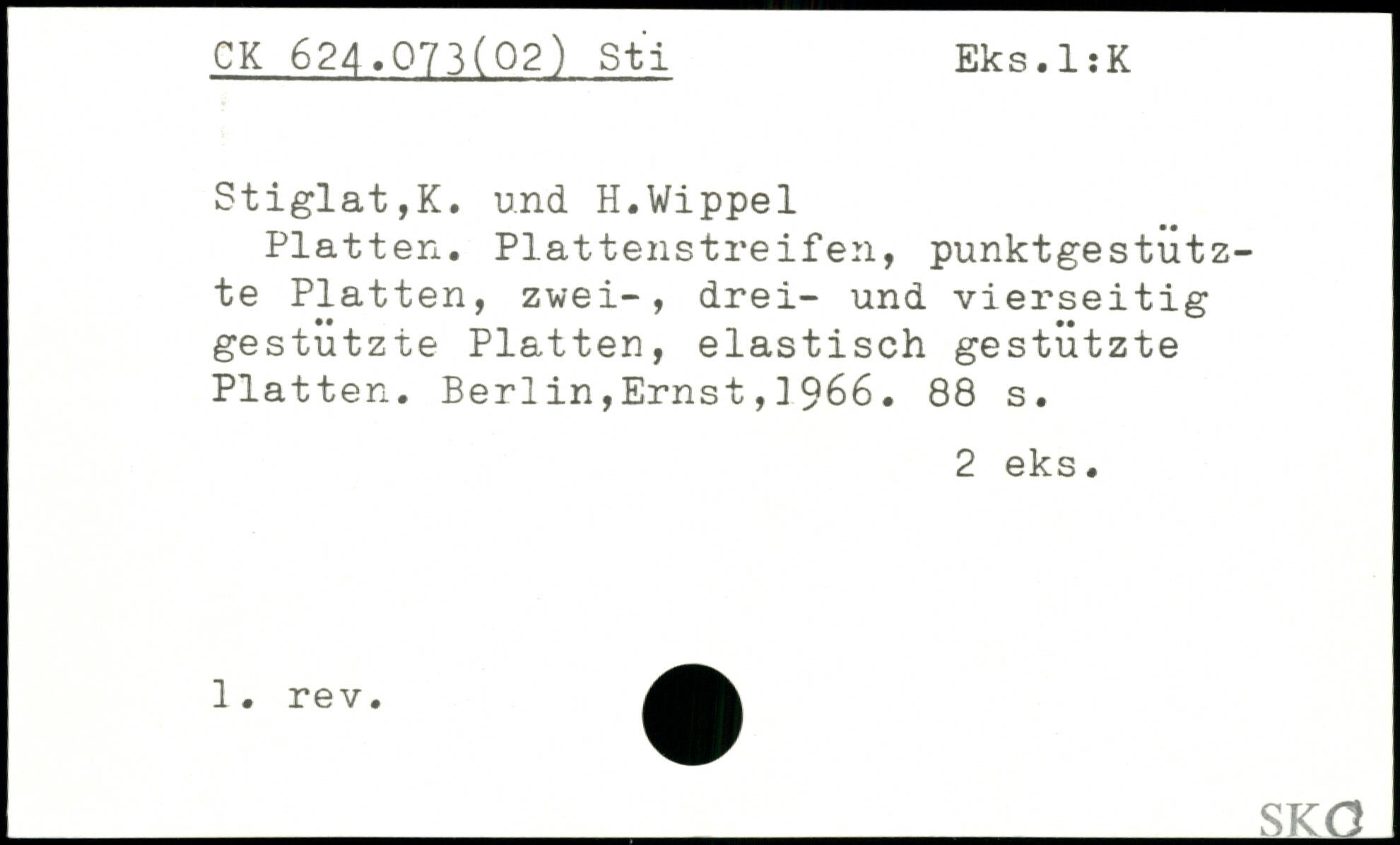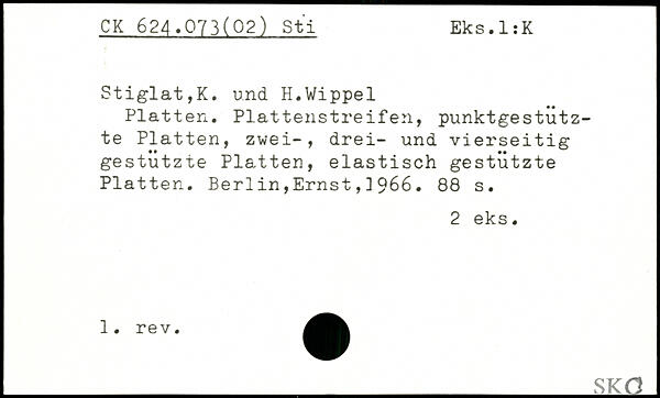 Platten. Plattenstreifen, punktgestutzte Platten, zwei-, drei- und vierseitig gestutzte Platten, elastisch gestützte Platten. Berlin,Ernst,]966.
