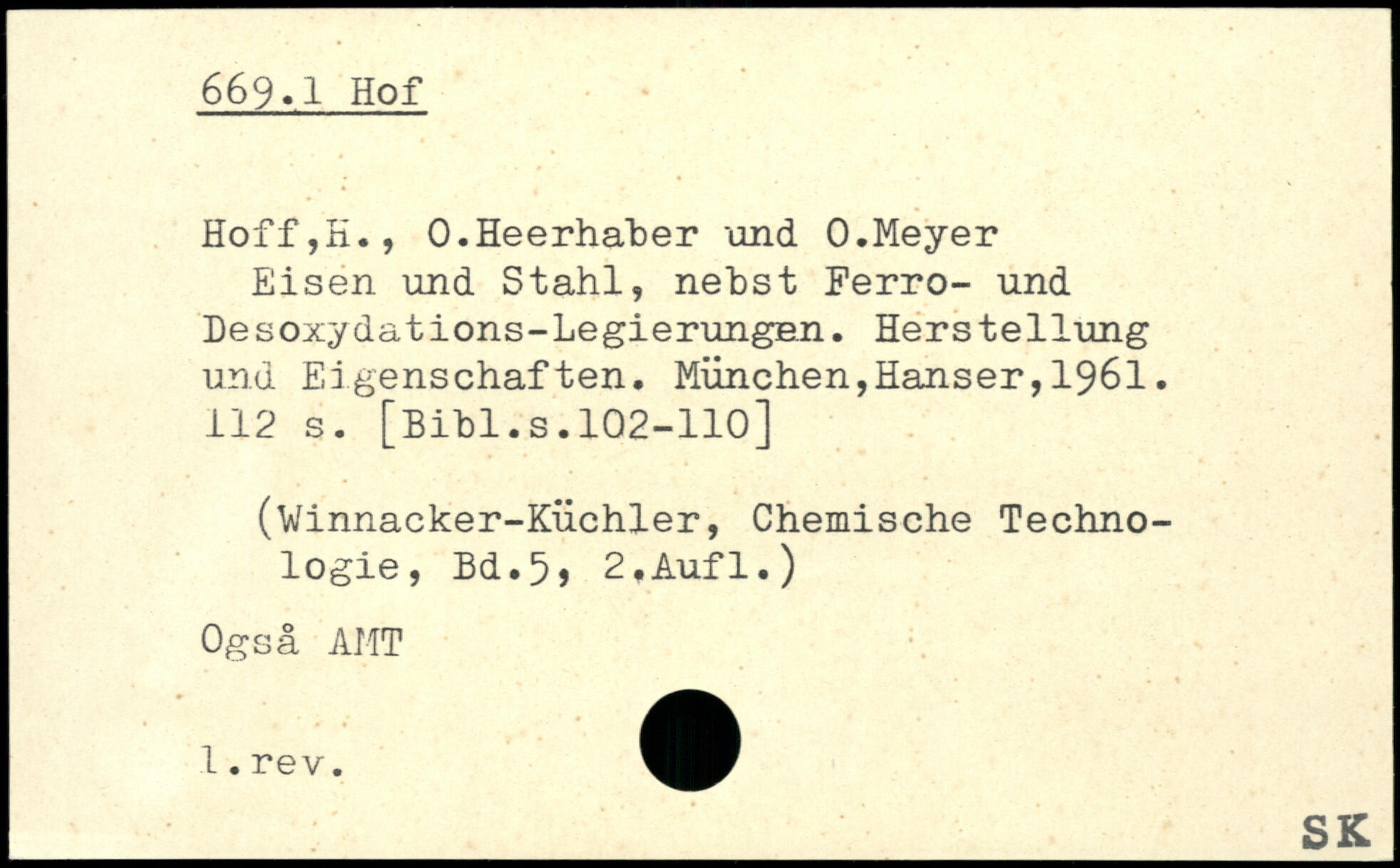 Hoff,H., 0.Heerhaber -and 0.Meyer Eisen und Stahl, nebst Perro- und Desoxydations-Legierungen. Herstellung und Eigenschaften.