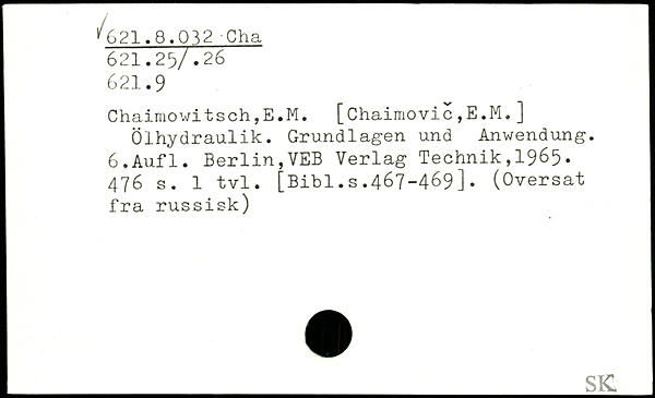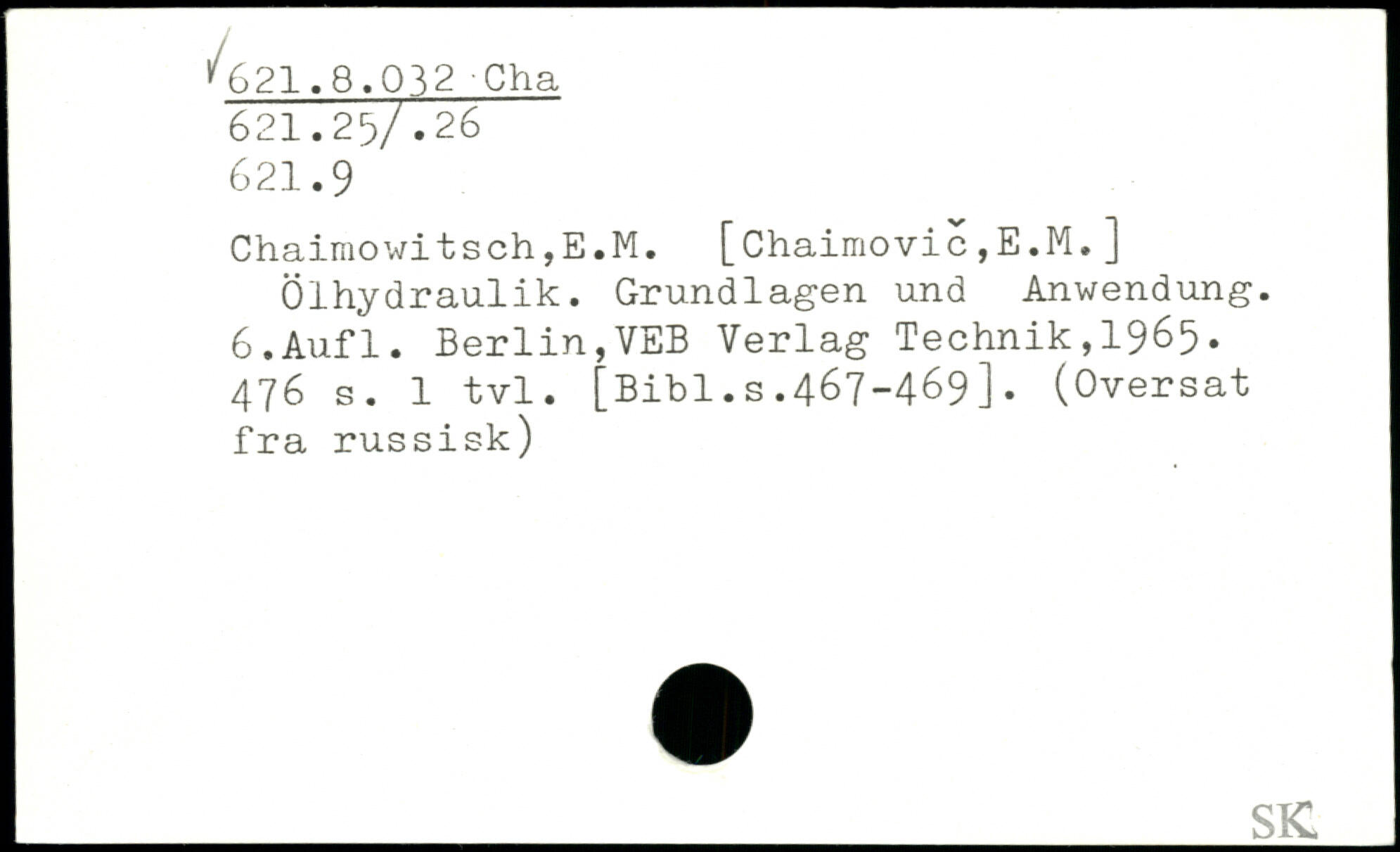 Chaimowitsch,E.M. [Chaimovic,E.M.] Ölhydraulik. Grundlagen und Anwendung.