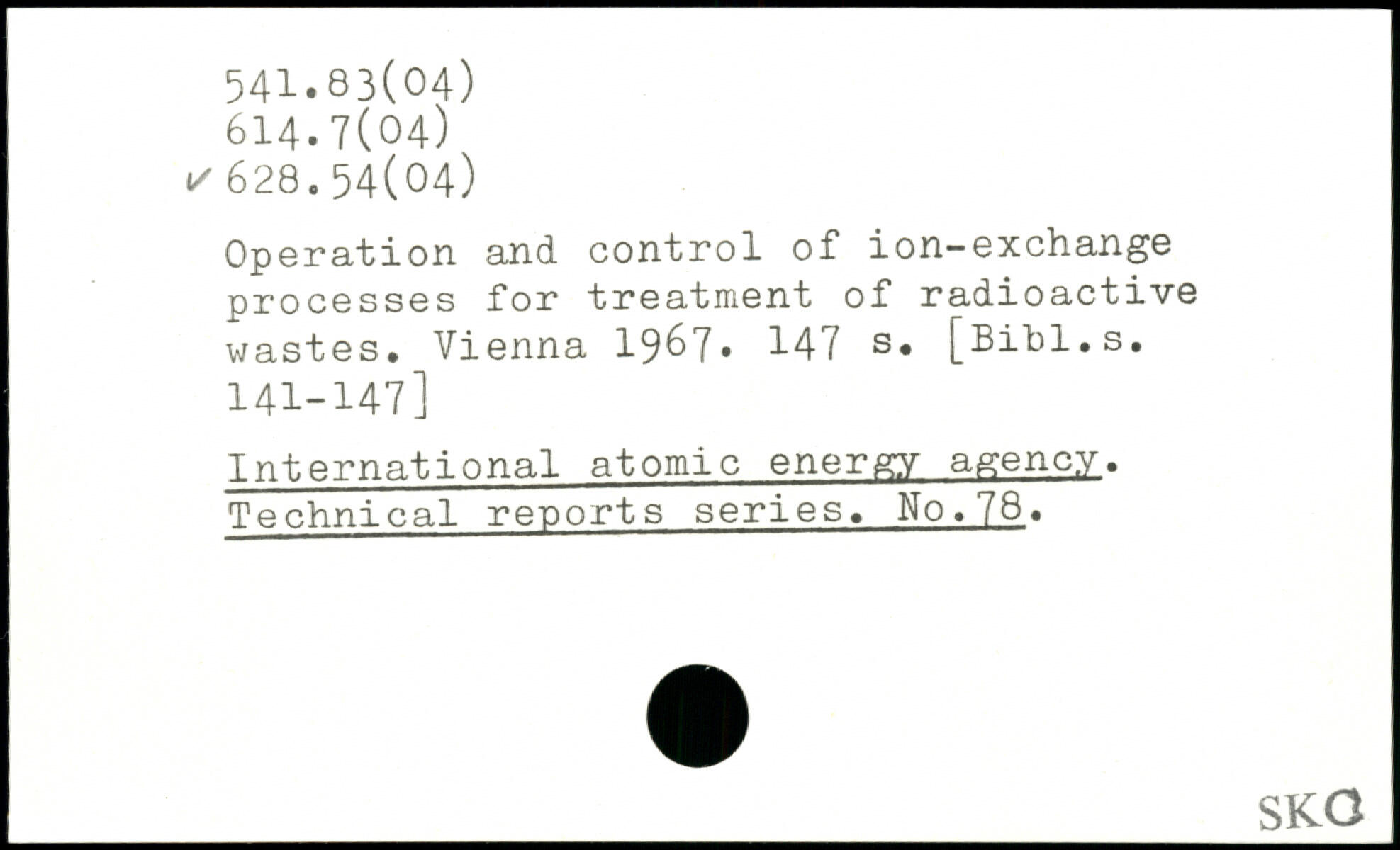 Operation and control of ion-exchange processes for treatment of radioactive wastes. Vienna 1967