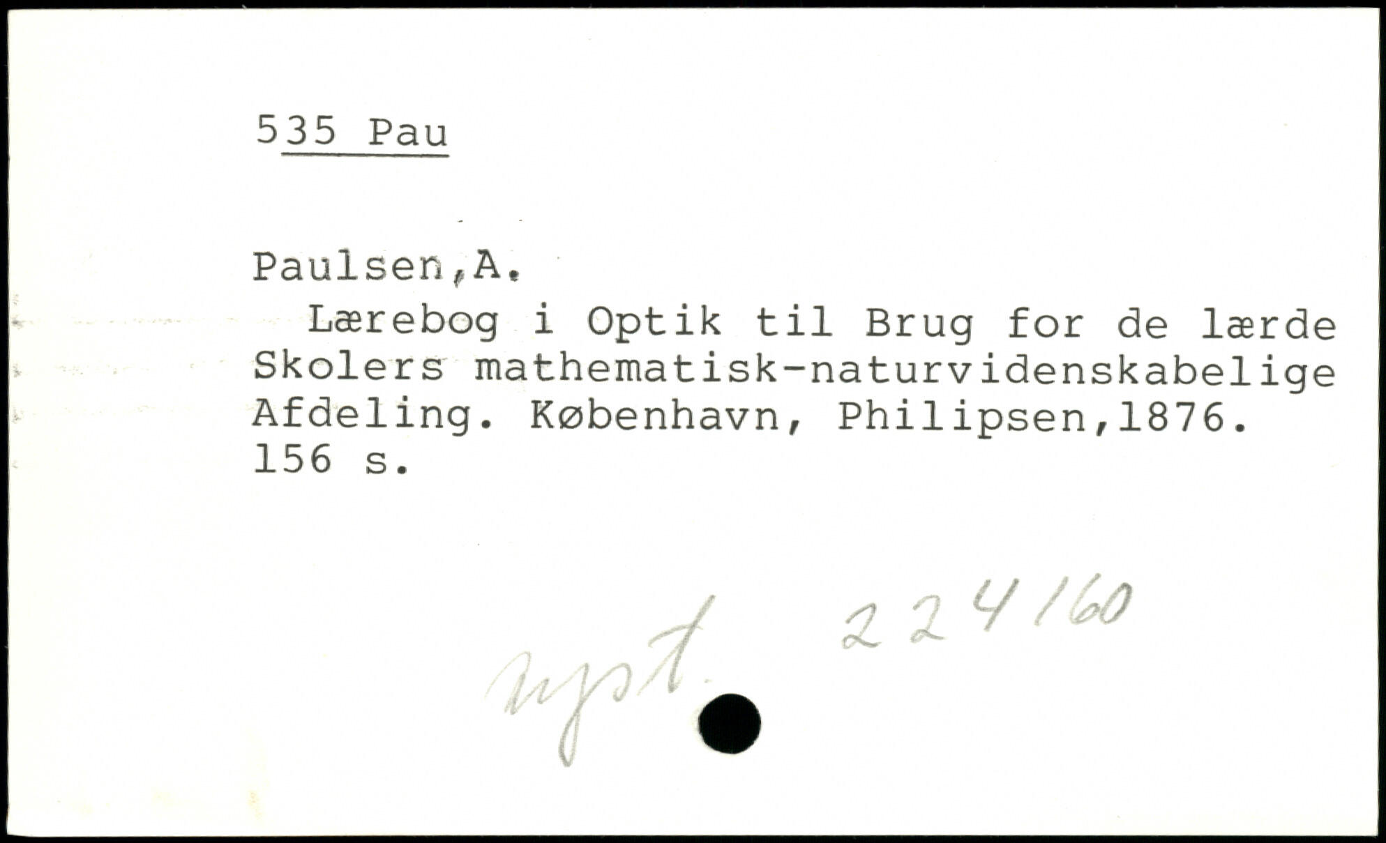Lærebog i Optik til Brug for de lærde Skolers mathematisk-naturvidenskabelige Afdeling.