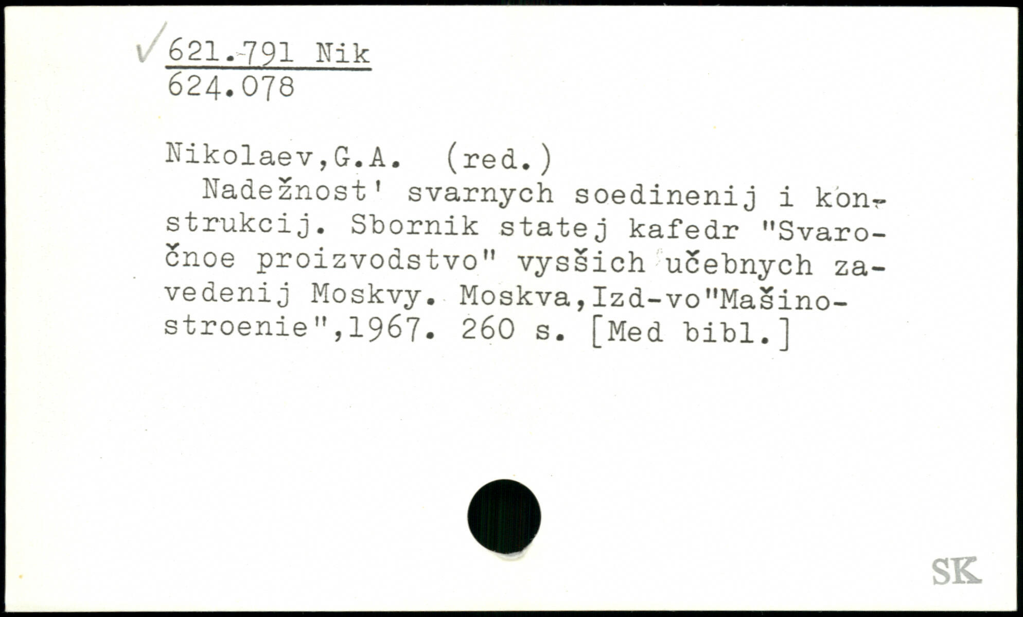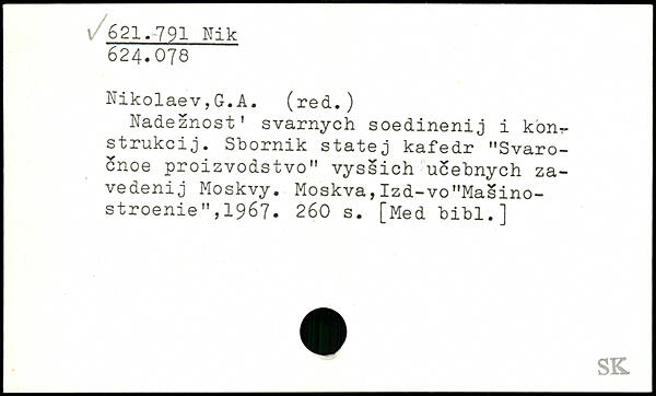 Nadeznost' svarnych soedinenij i kon^ strukcij. Sbornik statej kafedr "Svaro-cnoe proizvodstvo" vyssich ucebnych za-vedenij Moskvy. Moskva,Izd-vo"Masino-stroenie",1967.