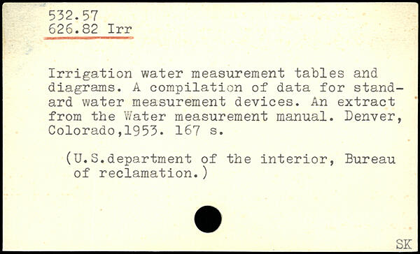 Irrigation water measurement tables and diagrams. A compilation of data for standard water measurement devices. An extract from the Water measurement manual.
