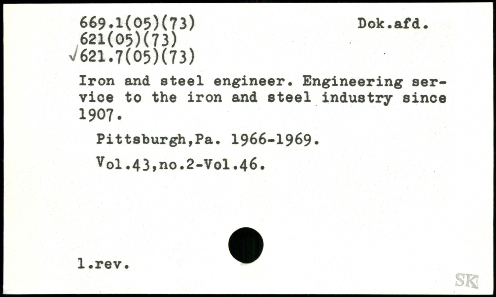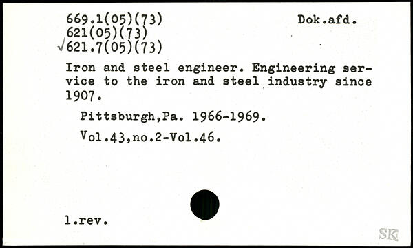 Iron and steel engineer. Engineering service to the iron and steel industry since 1907. Pittsburgh,Pa. 1966-1969.