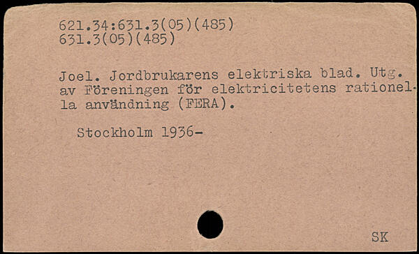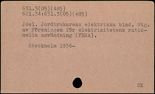Joel. Jordbrukarens elektriska blad. Utg. av Föreningen för elektricitetens rationella användning (PERA).