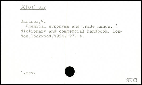 Chemical synonyms and trade names. A dictionary and commercial handbook.