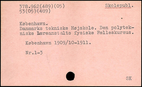Danmarks tekniske Højskole. Den polytekniske læreanstalts fysiske Fælleskursus.