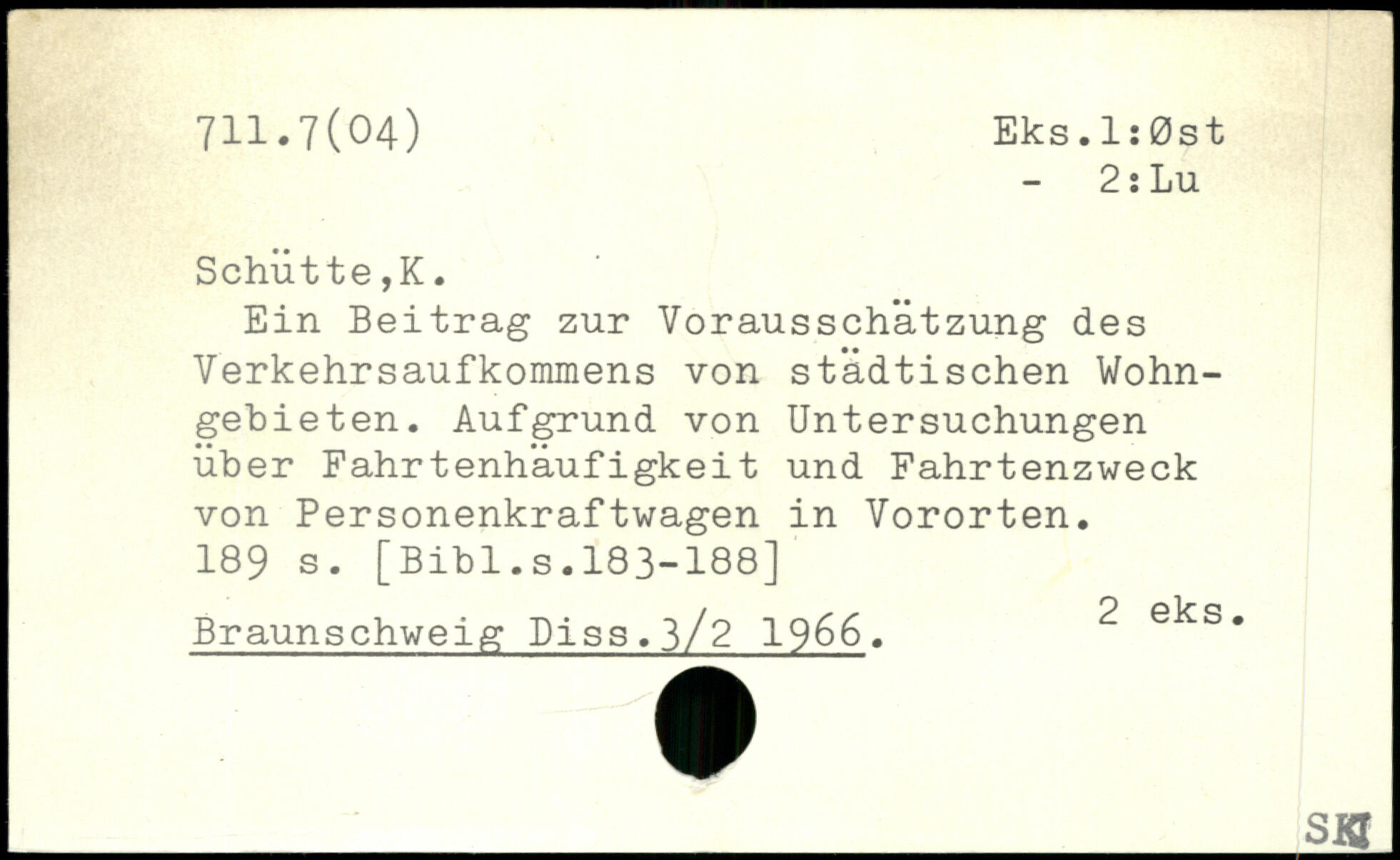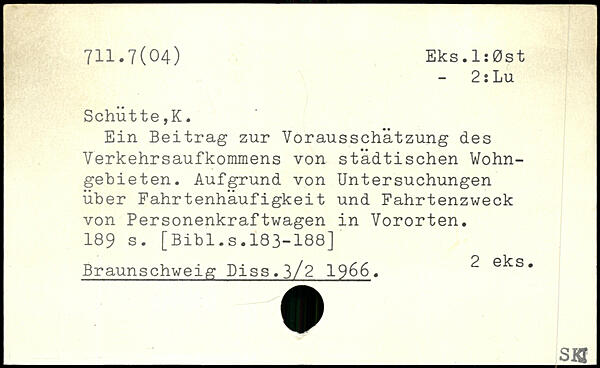 Ein Beitrag zur Vorausschätzung des Verkehrsaufkommens von städtischen Wohngebieten. Aufgrund von Untersuchungen über Fahrtenhäufigkeit und Fahrtenzweck von Personenkraftwagen in Vororten.