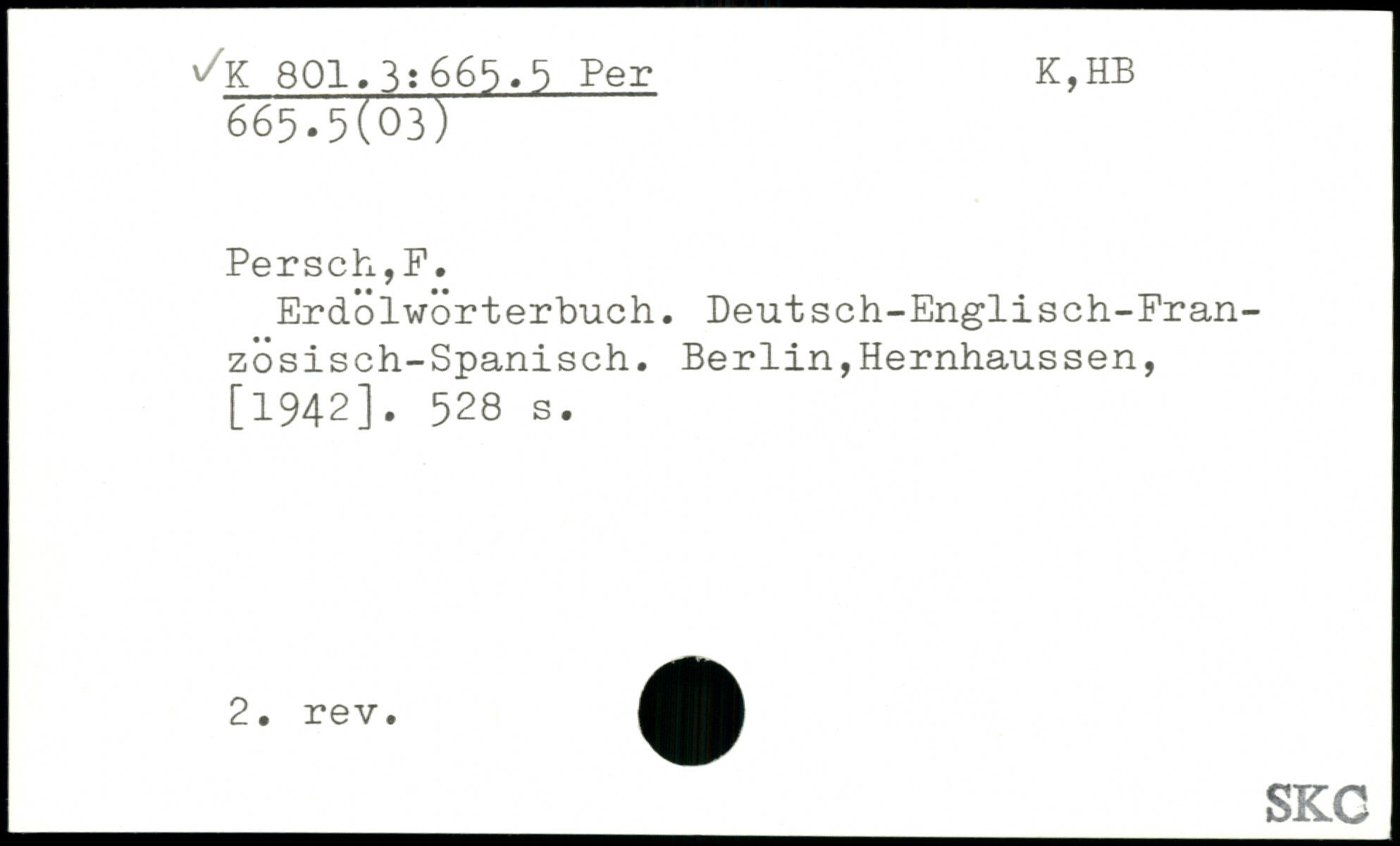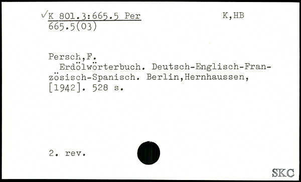 Erdölwörterbuch. Deutsch-Englisch-Französisch-Spanisch. Berlin,Hernhaussen,