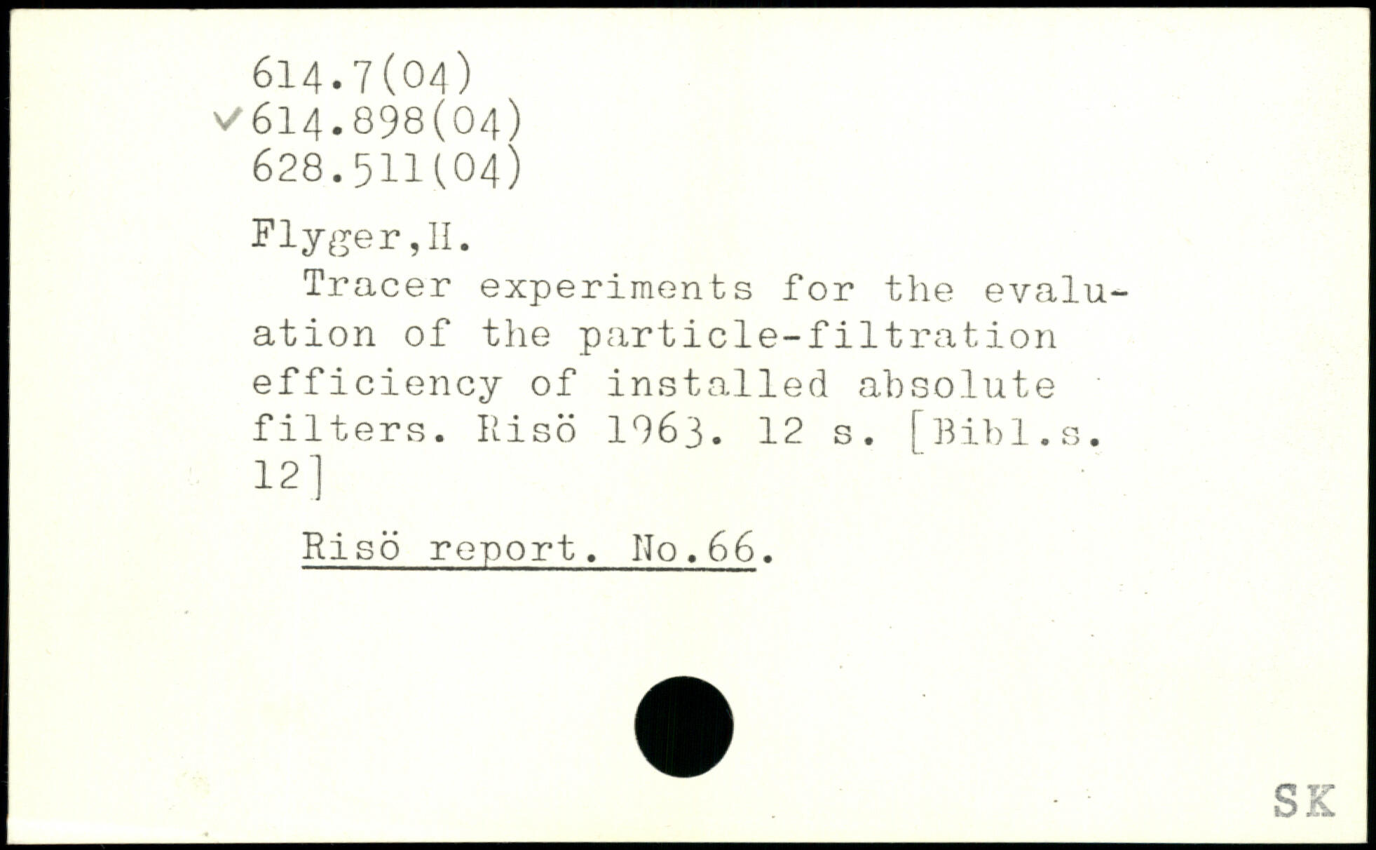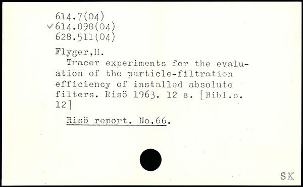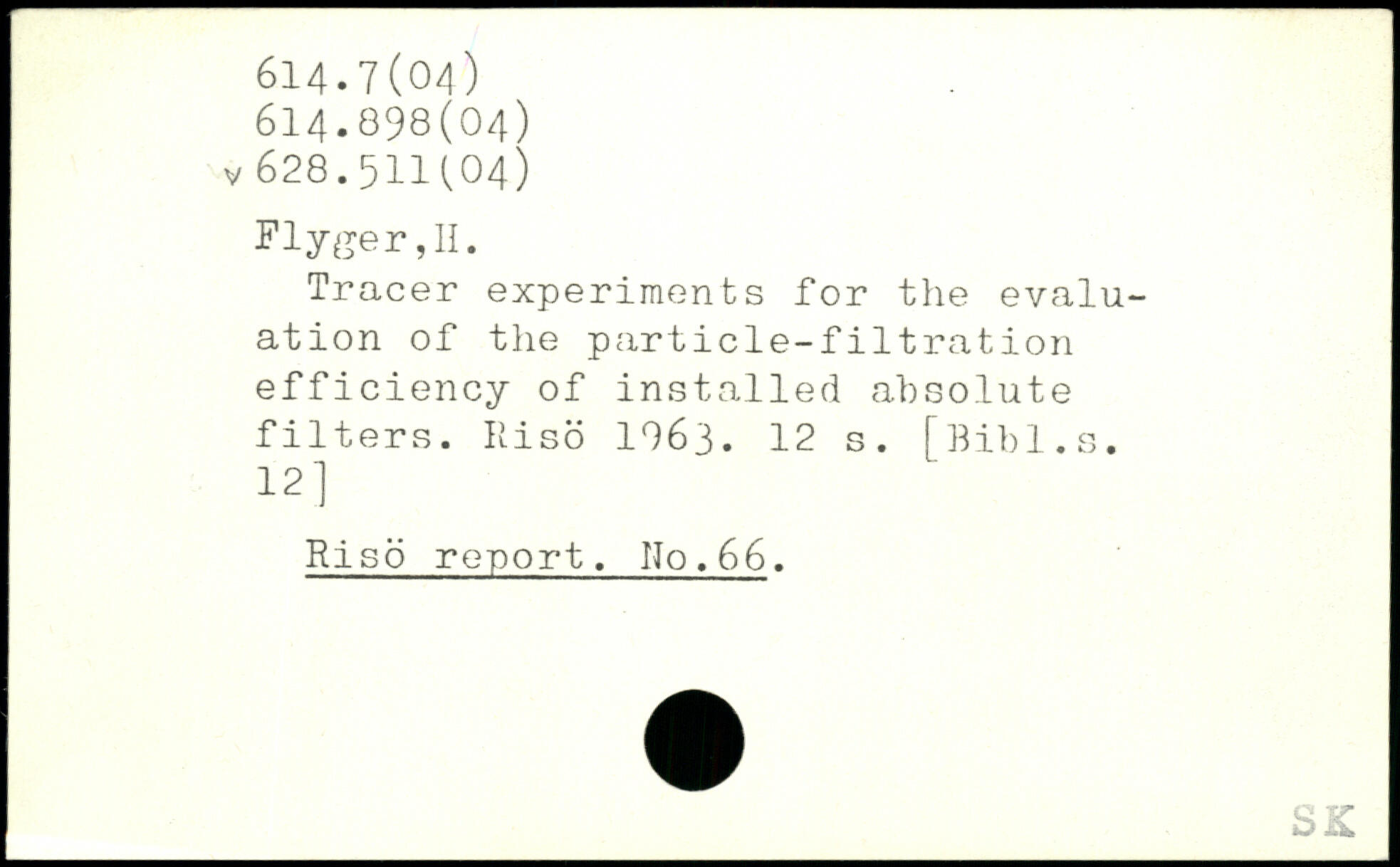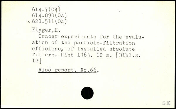 Tracer experiments for the evaluation of the particle-filtration efficiency of installed absolute filters. Riso 1963.