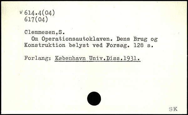 Om Operationsautoklaven. Dens Brug og Konstruktion "belyst ved Forsøg.