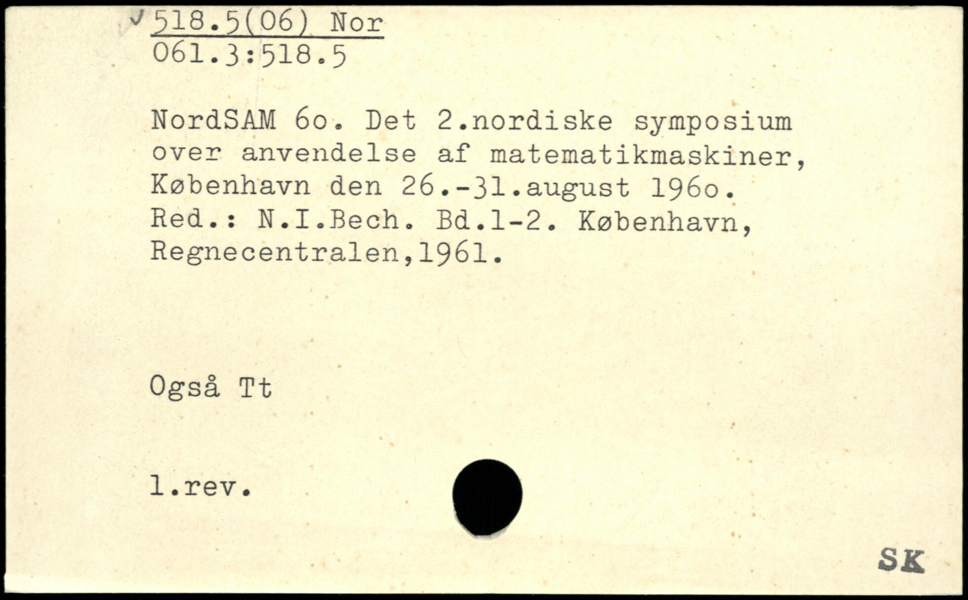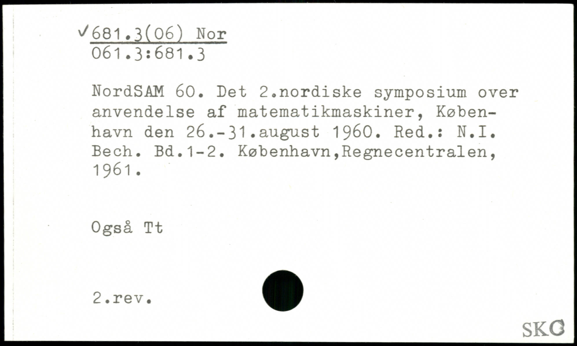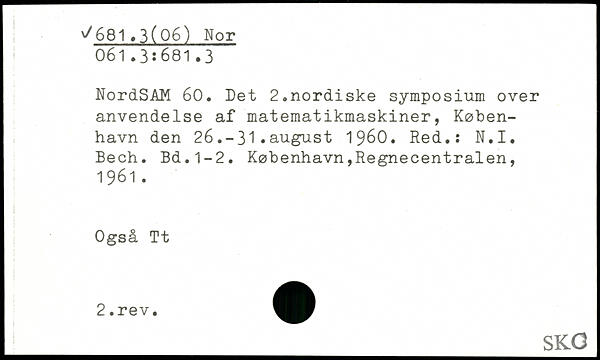 NordSAM 6o. Det 2.nordiske symposium over anvendelse af matematikmaskiner, København den 26.-31.august 1960. Red.: N.I.Bech.