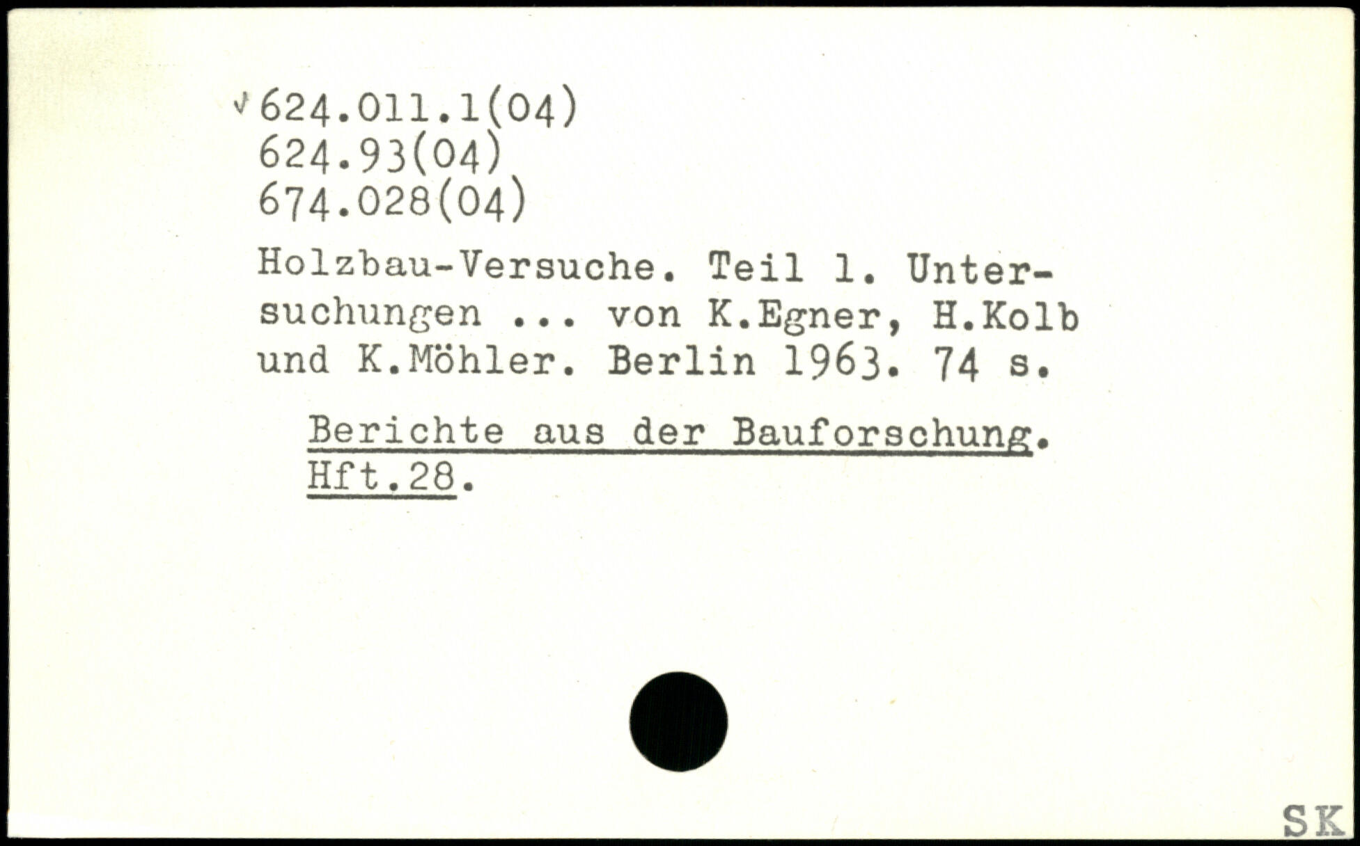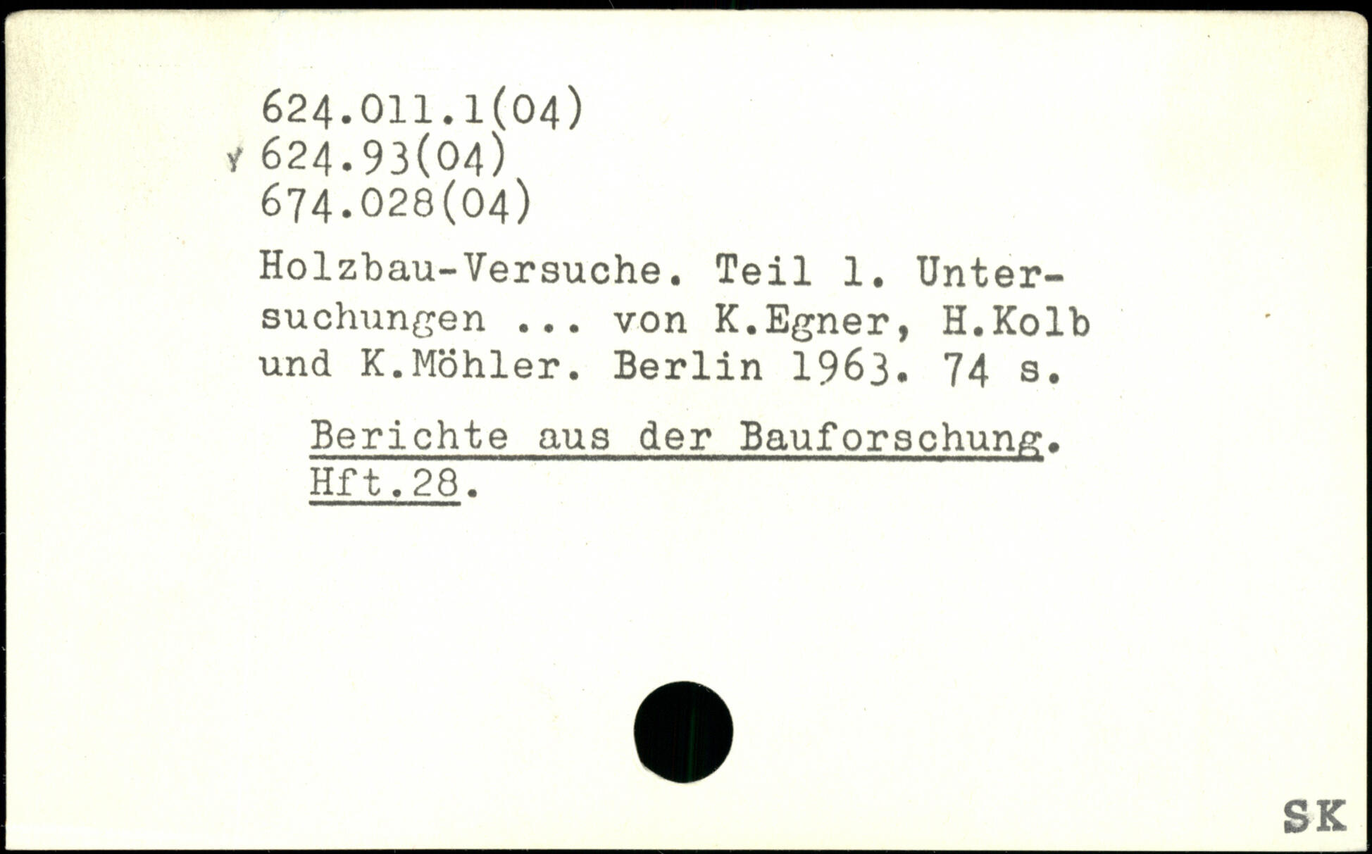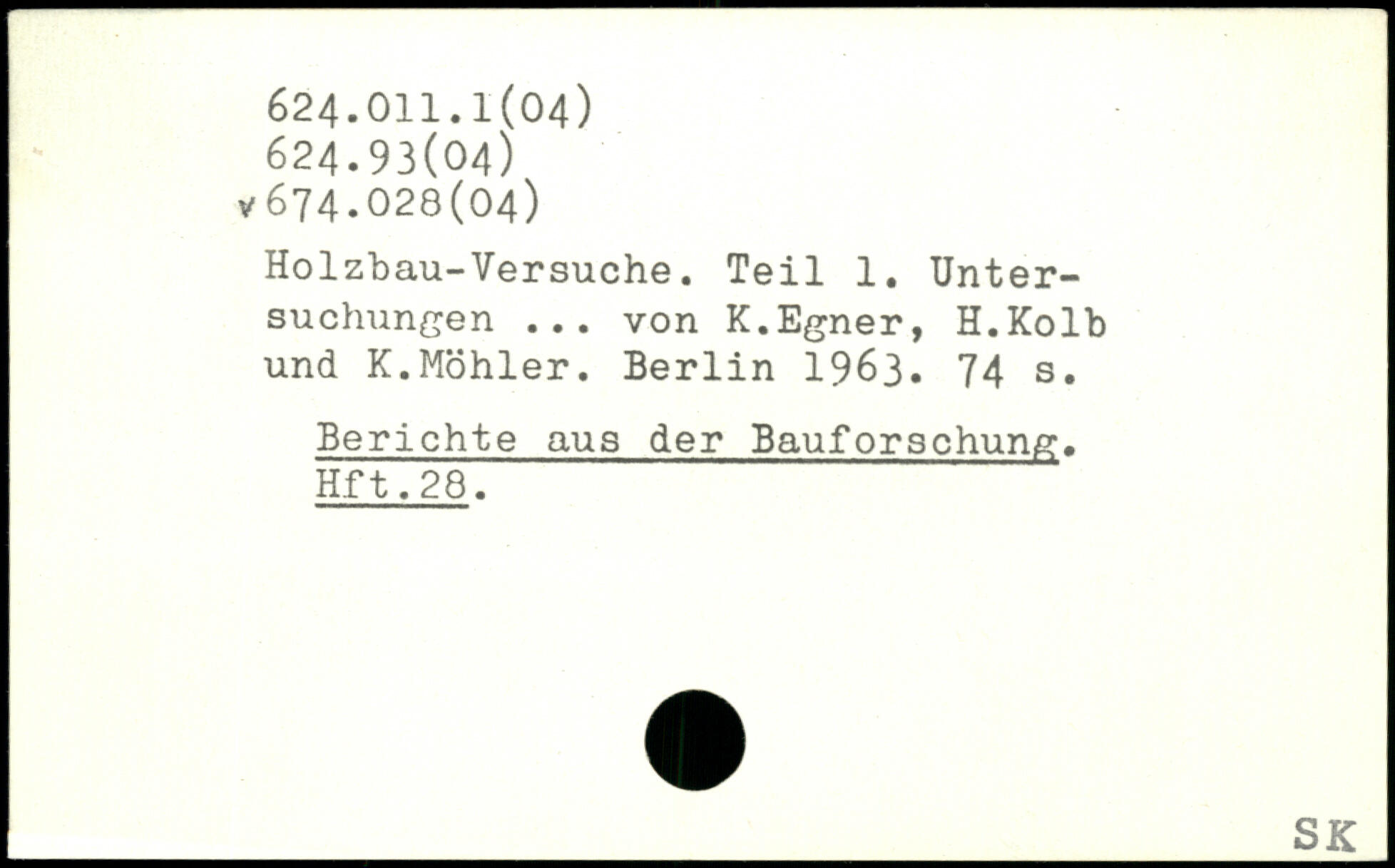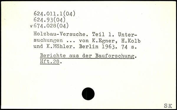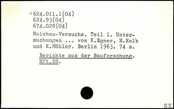 Holzbau-Versuche. Teil 1. Untersuchungen ... von K.Egner, H.Kolb und K.Möhler.