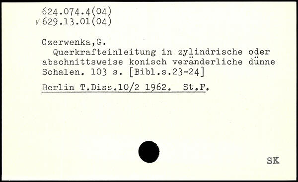 Querkrafteinleitung in zylindrische oder abschnittsweise konisch veränderliche dünne Schalen.