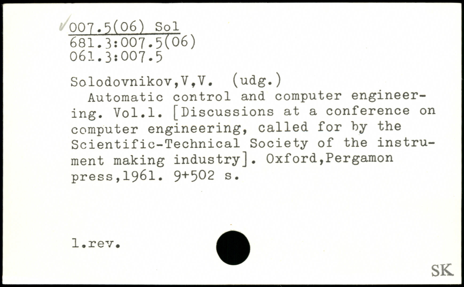 Solodovnikov,VfV. (udg.) Automatic control and computer engineering.
