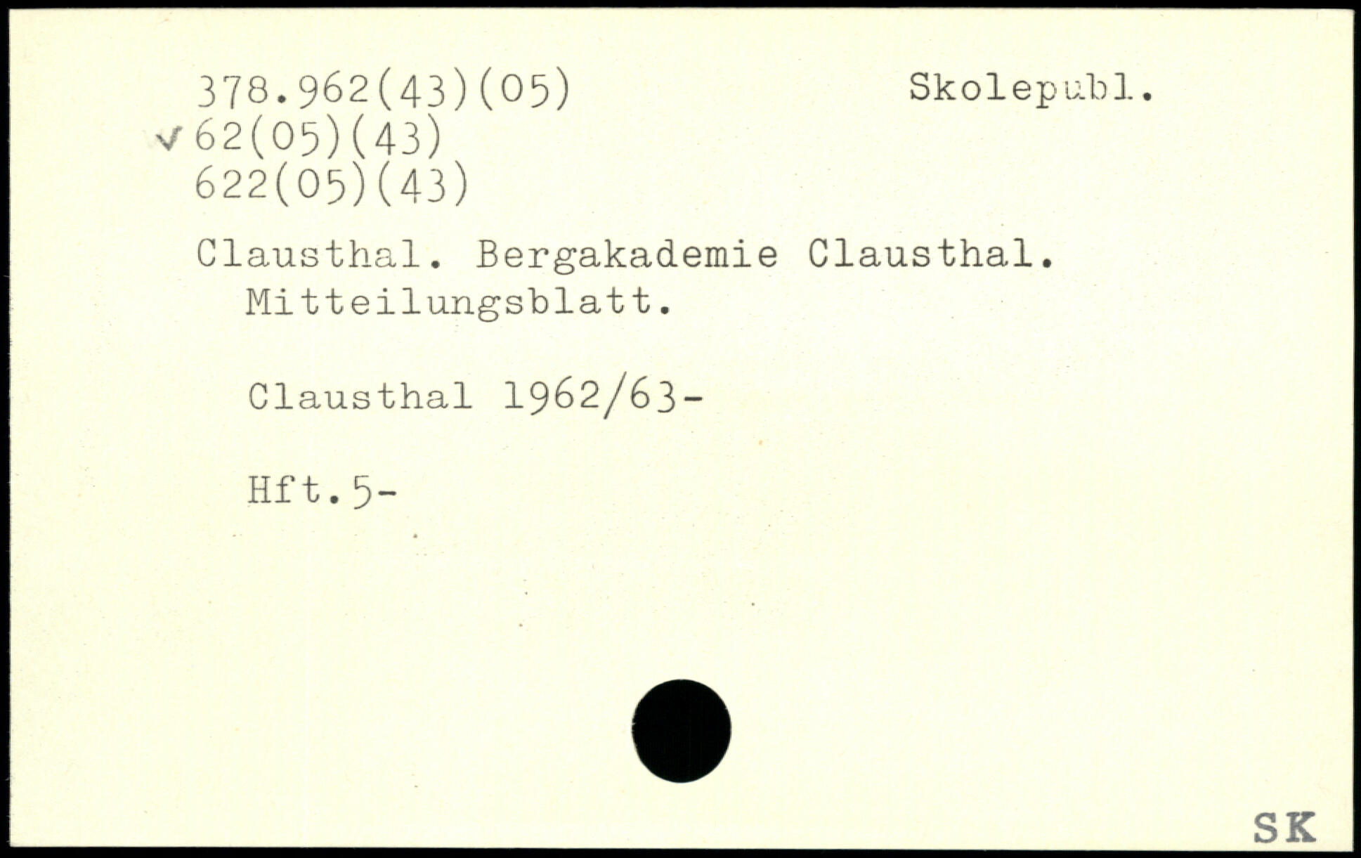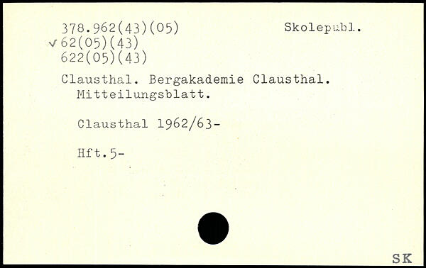 Clausthal. Bergakademie Clausthal. Mitteilungsblatt. Clausthal 1962/63- Hft.5-