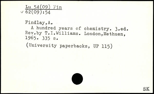 A hundred years of chemistry. 3,ed. Rev.by T.I.W1111ams.