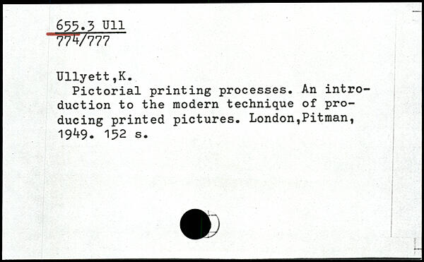 Pictorial printing processes. An introduction to the modern technique of producing printed pictures. London,Pitman, 19^9.