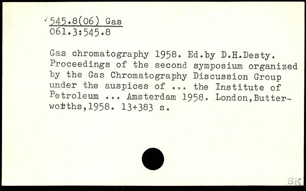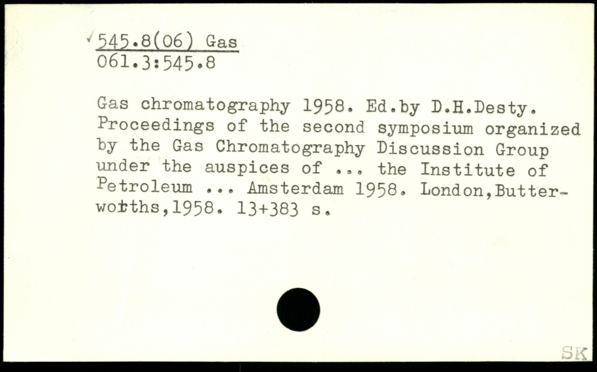 Gas chromatography 1958. Ed.by D.H.Desty. Proceedings of the second symposium organized by the Gas Chromatography Discussion Group under the auspices of ... the Institute of Petroleum ... Amsterdam 1958.