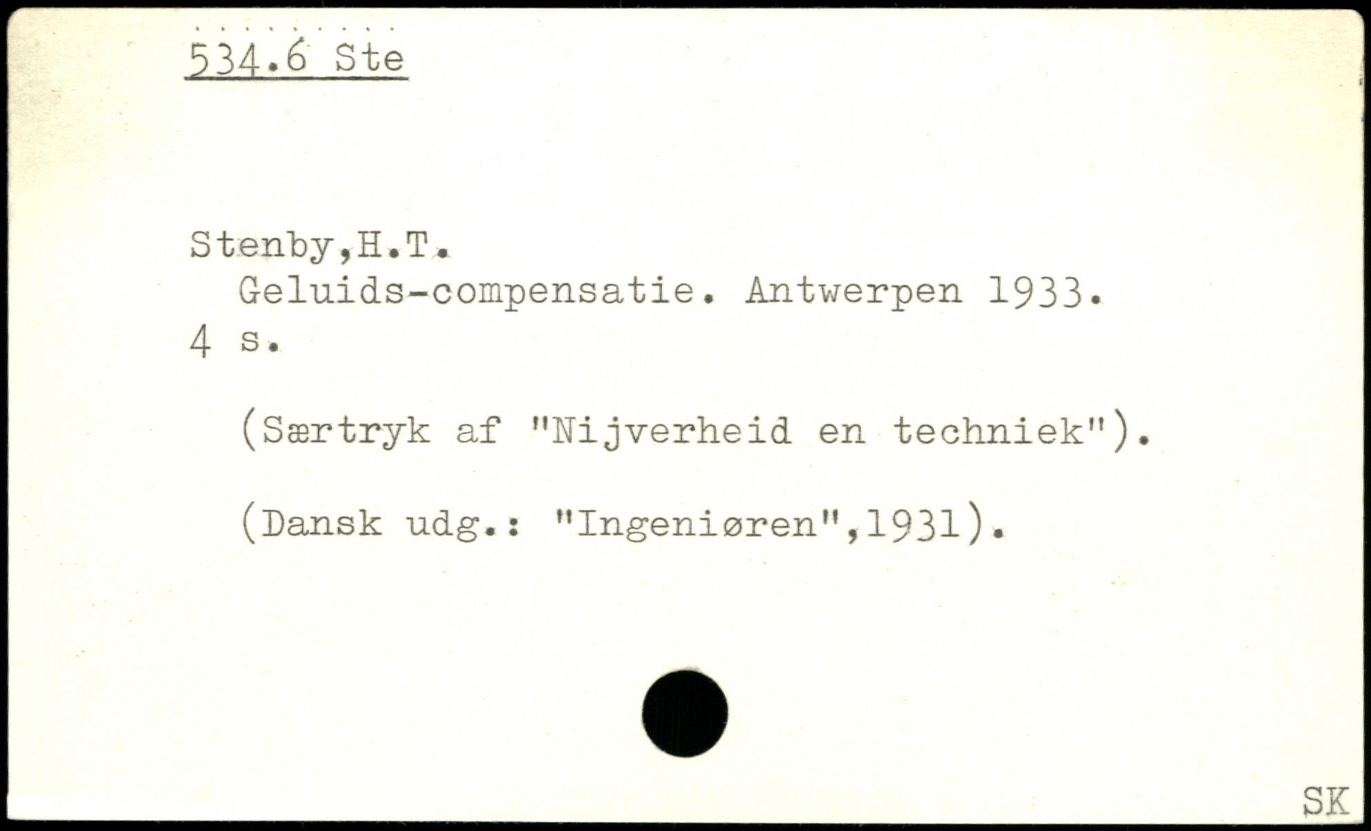 Geluids-compensatie. Antwerpen 1933.