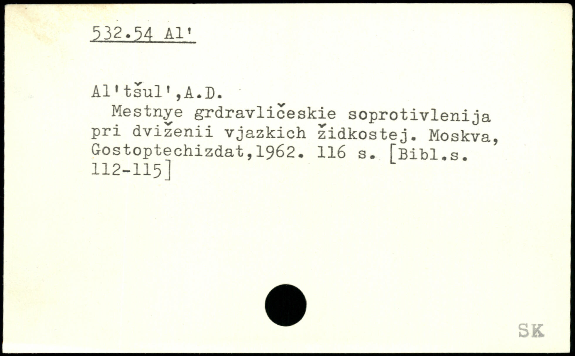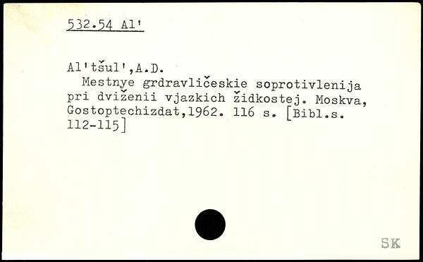 Al'tsul',A.D. Mestnye grdravliceskie soprotivlenija pri dvizenii vjazkich zidkostej.