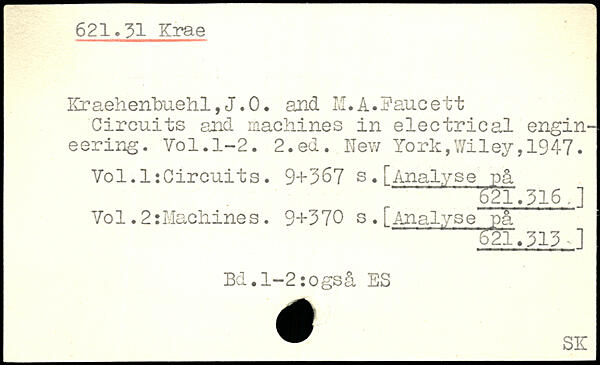 Kir aehenbuehl, J. 0. and M. A.Bauc e11 Circuits and machines in electrical engineering.