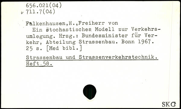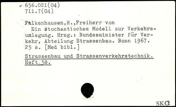 P&lkenhausen,H.,Freiherr von Ein stochastisches Modell zur Verkehrs-umlegung. Hrsg.: Bundesminister für Verkehr, Abteilung Strassenbau. Bonn 1967