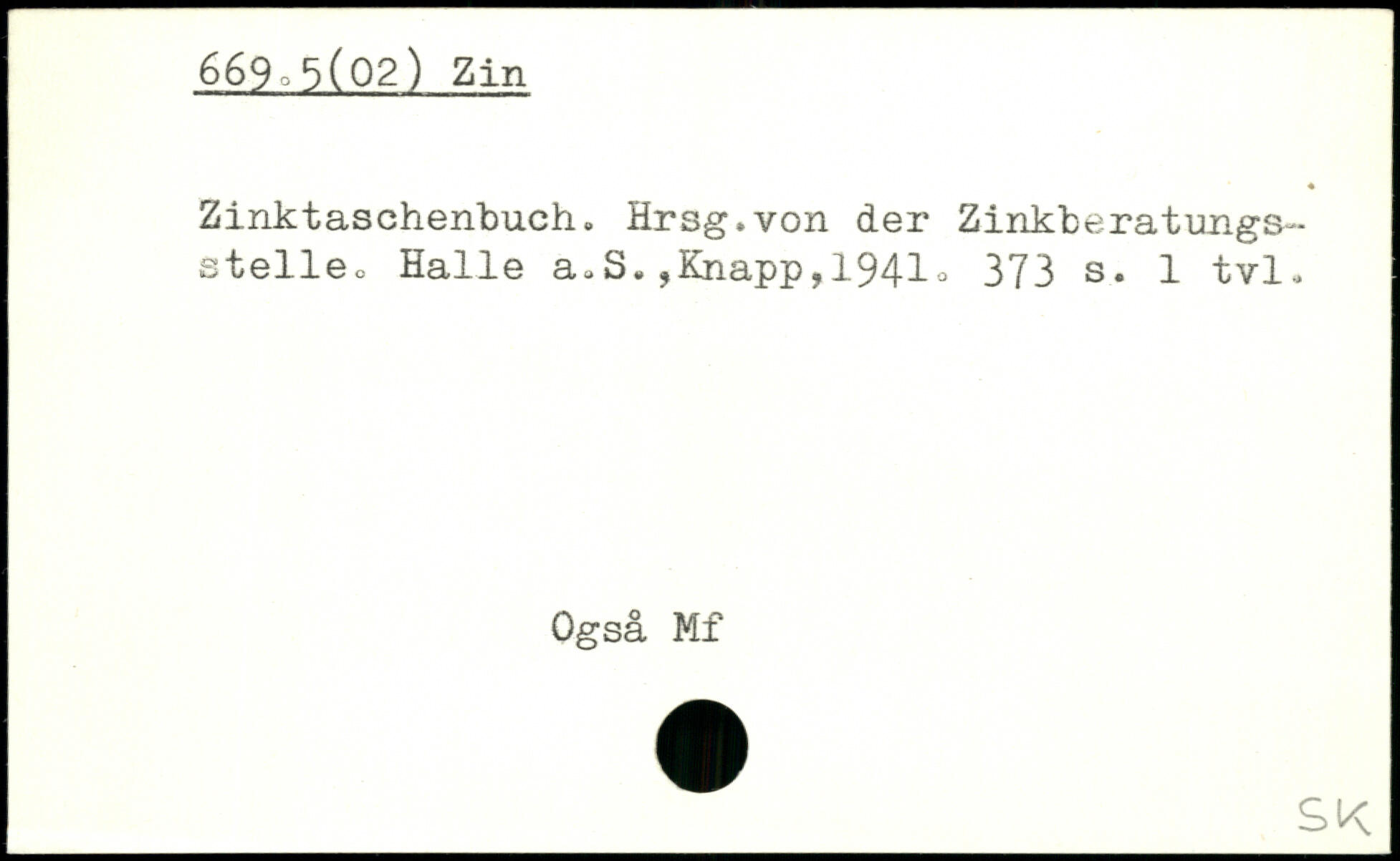 Zinktaschenbuch. Hrsg.von der Zinkberatungsstelle. Halle a.