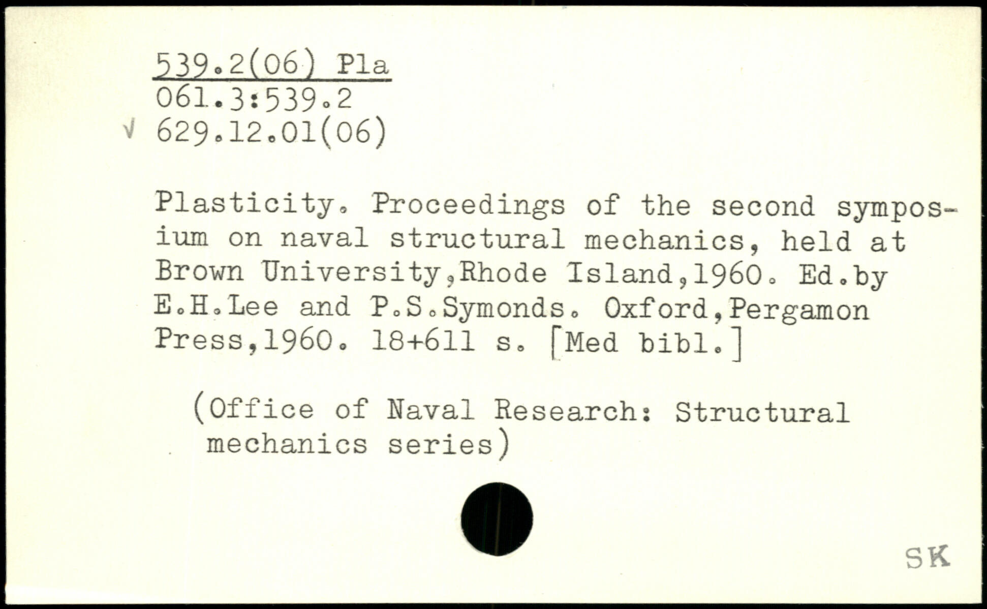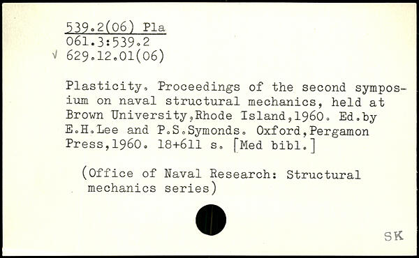Plasticity, Proceedings of the second symposium on naval structural mechanics, held at