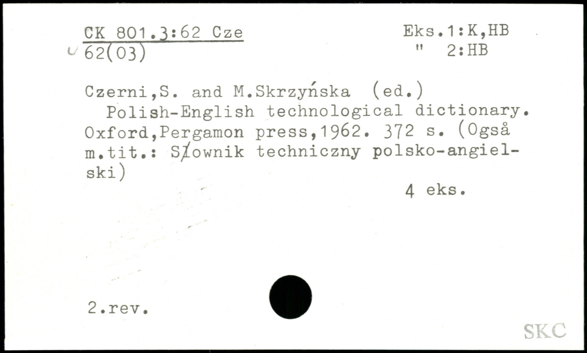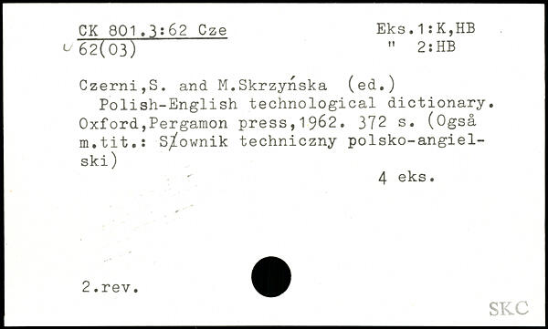 Polish-English technological dictionary. Oxford,Pergamon press,19^2.