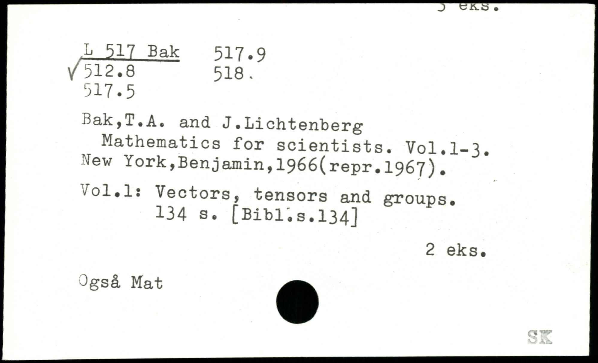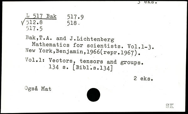 UDK: 517 Bak, 517.9, 512.0, 518., 517.5